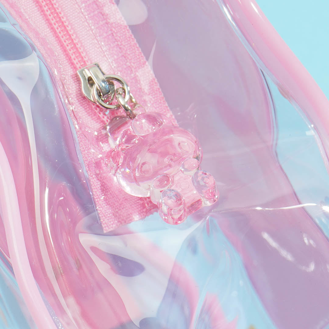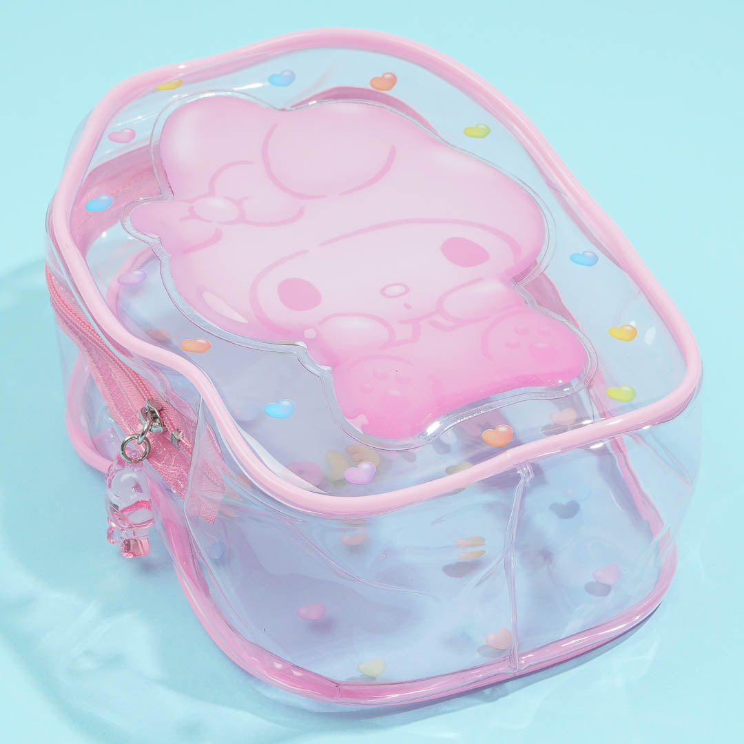 Store small makeup items inside this super kawaii transparent pouch. It features a print of the gummy bear version of My Melody! This zippered pouch comes from Sanrio's Gummy Candy series.