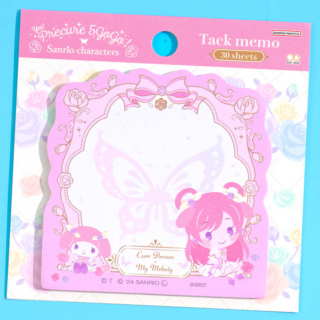 Use this super kawaii sticky note pad to keep track of your tasks! It's shaped like a mirror with prints of My Melody and Cure Dream from the "Pretty Cure 5 Go Go" series.