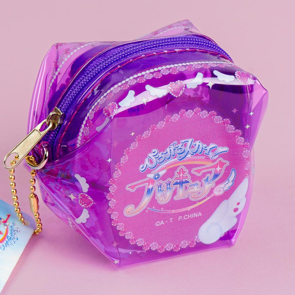 This kawaii clear mini pouch is perfect for Pretty Cure fans! It features a cute illustration of Princess Ellee from "Soaring Sky! Pretty Cure" with a rainbow. The pouch is dice-shaped so you can fill it with coins or lip balms!