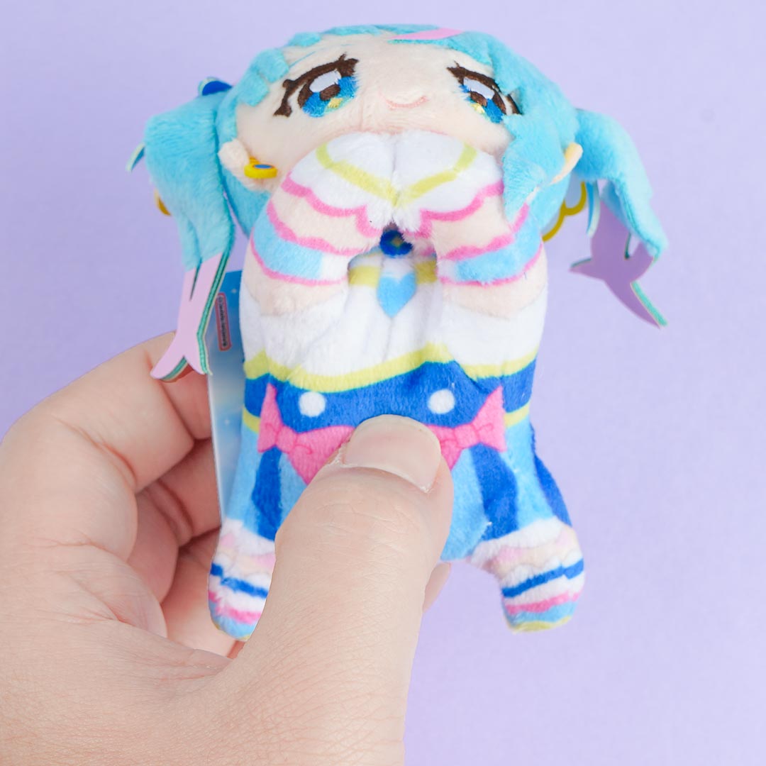 This kawaii Cure Sky plushie features movable arms that can grab and hold various things in your room. It comes from the Soaring Sky! Pretty Cure Hagu Chara collection. Play with this medium-sized stuffed toy or attach it to your bag!