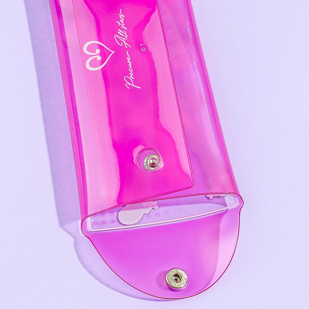 This stylish clear case comes from the 20th anniversary of the Pretty Cure anime series! It features cute prints of Pretty Cure characters. You can use this to store your stationery or mini makeup brushes!