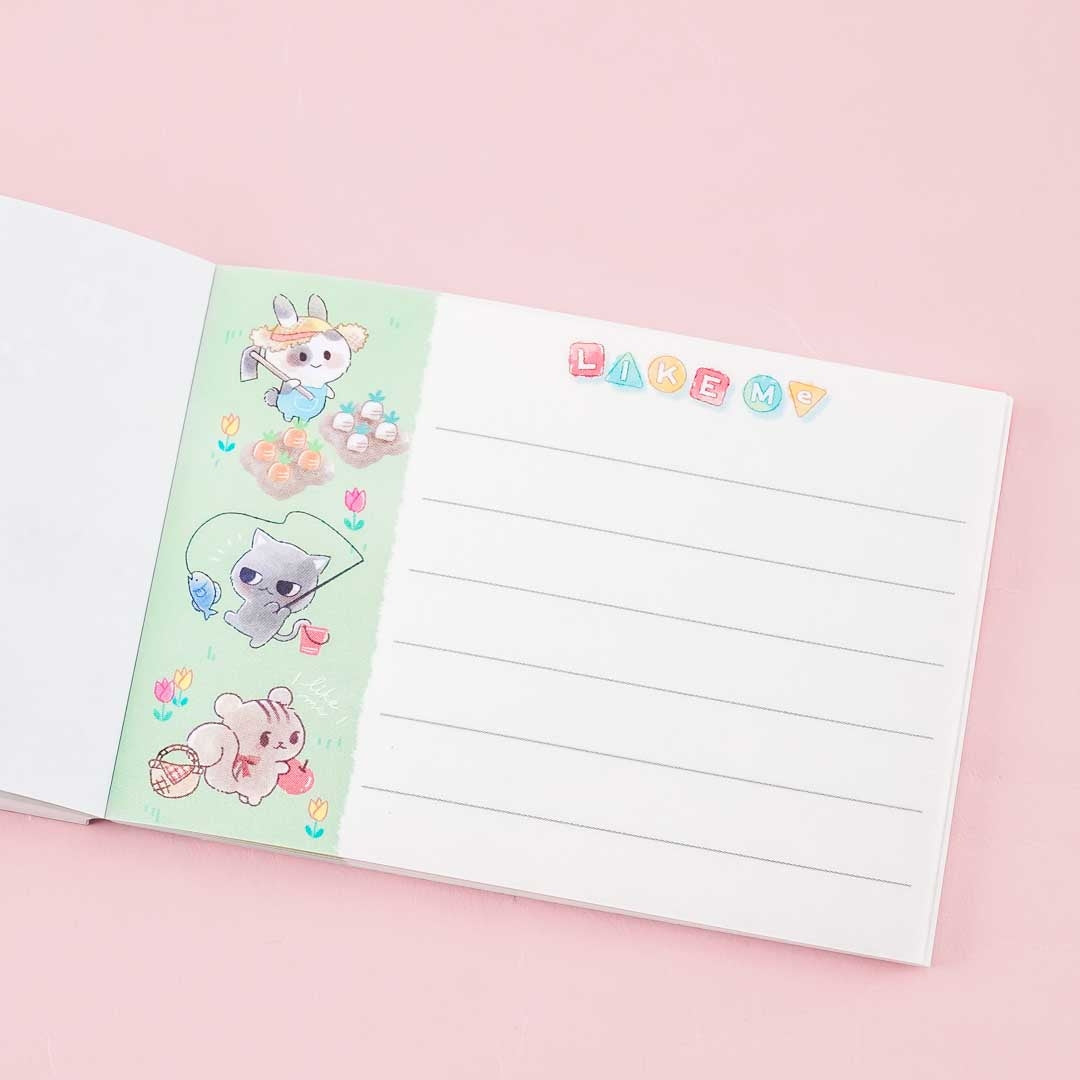 Make sure you stay on top of things by writing important reminders on this kawaii memo pad. It's covered in prints of cute animals fishing on an island! This pad has lined pages and blank pages with illustrations for you to use.