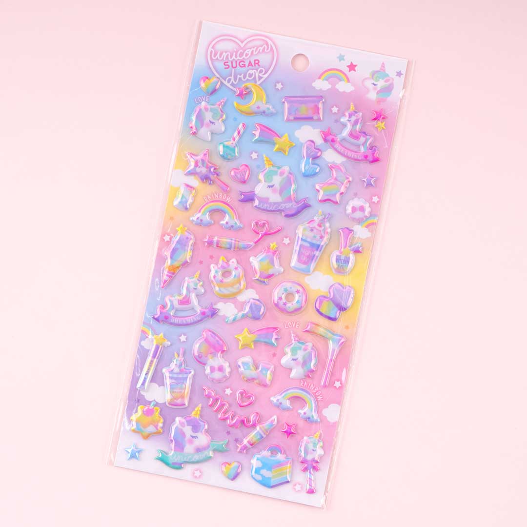 Use this cute sheet of stickers to decorate your phone case or laptop case! It showcases kawaii unicorns, rainbow cake, wands, and other magical things.