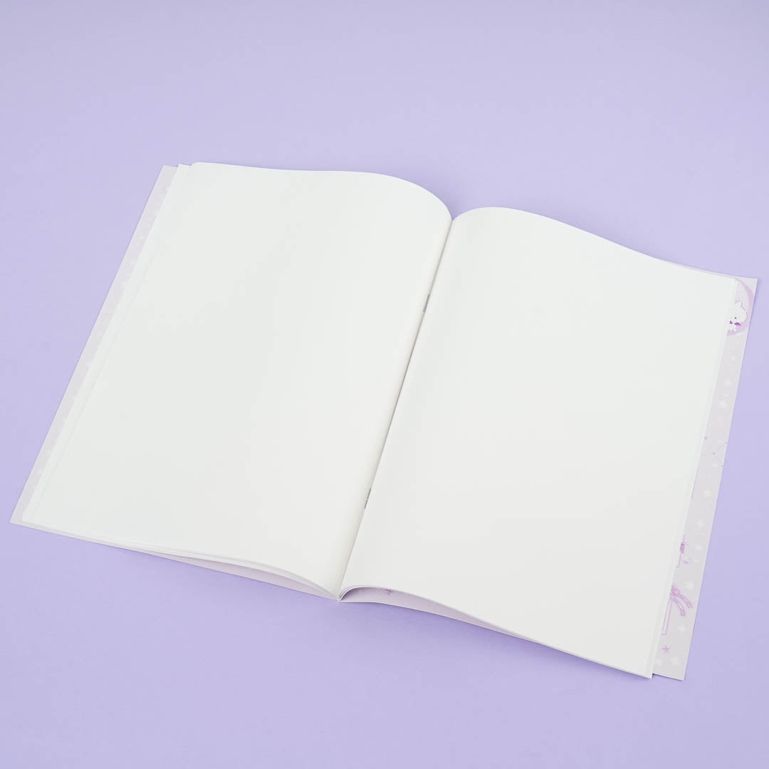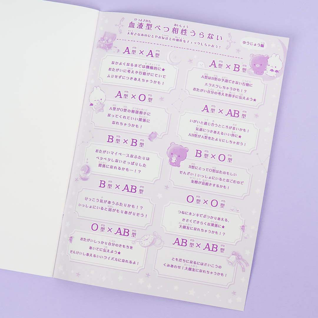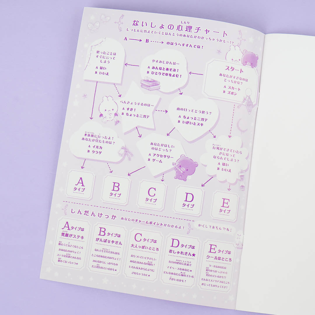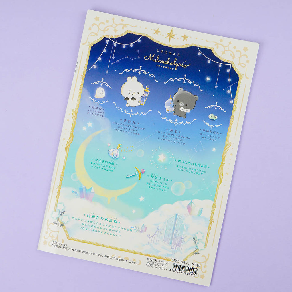 This super kawaii notebook is covered with a cute illustration of Melancholyric characters playing in a moonlit sky, You can use the B5-sized plain pages to draw cute pictures or write sweet poems. This even comes with a personality quiz and chart at the back!
