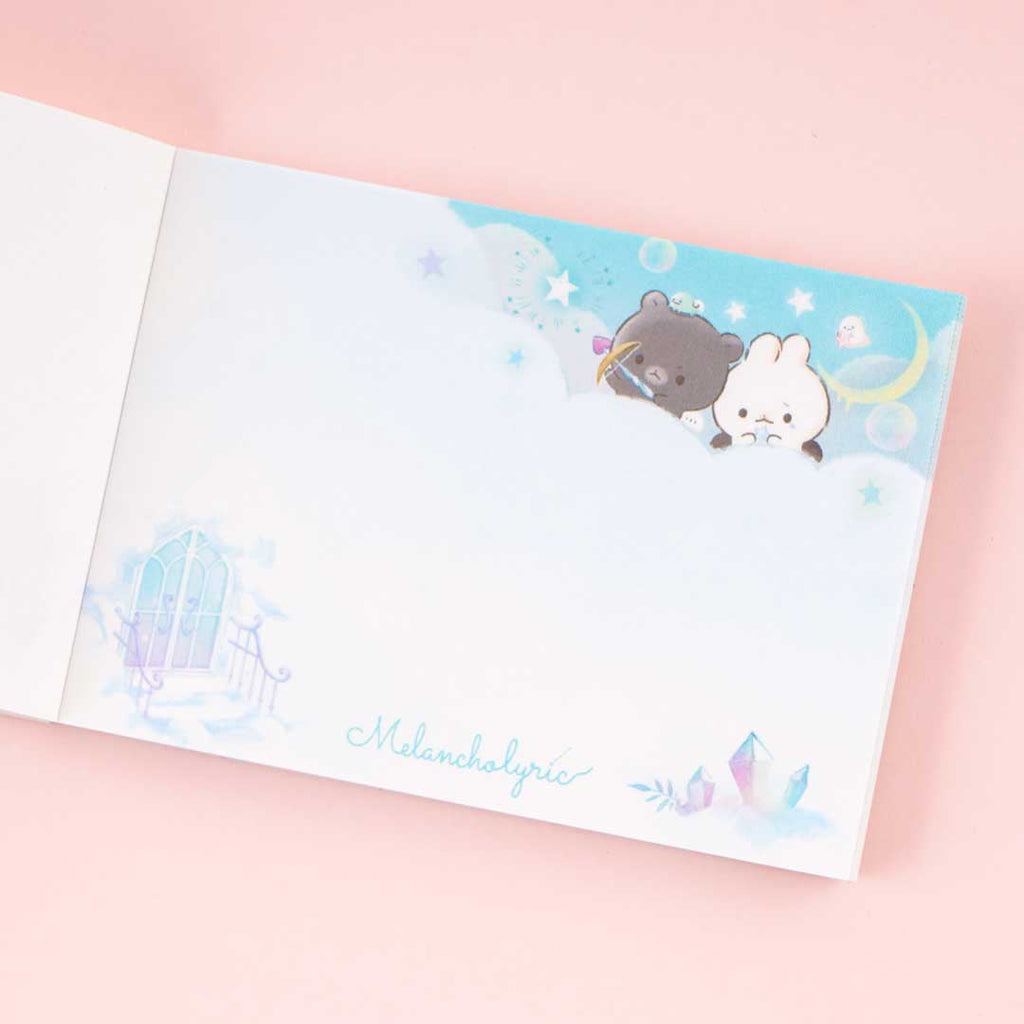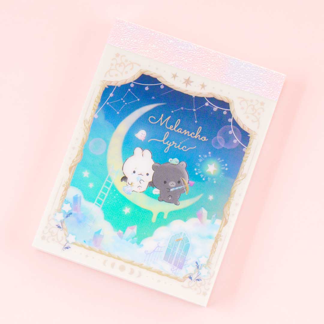 Enjoy writing sweet short messages to your friends using this kawaii mini memo pad! Its cover and sheets are all decorated with illustrations of Amo the angel bear and Satan the evil rabbit playing across the night sky.