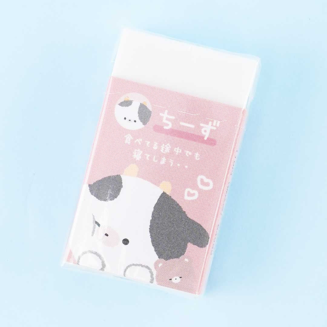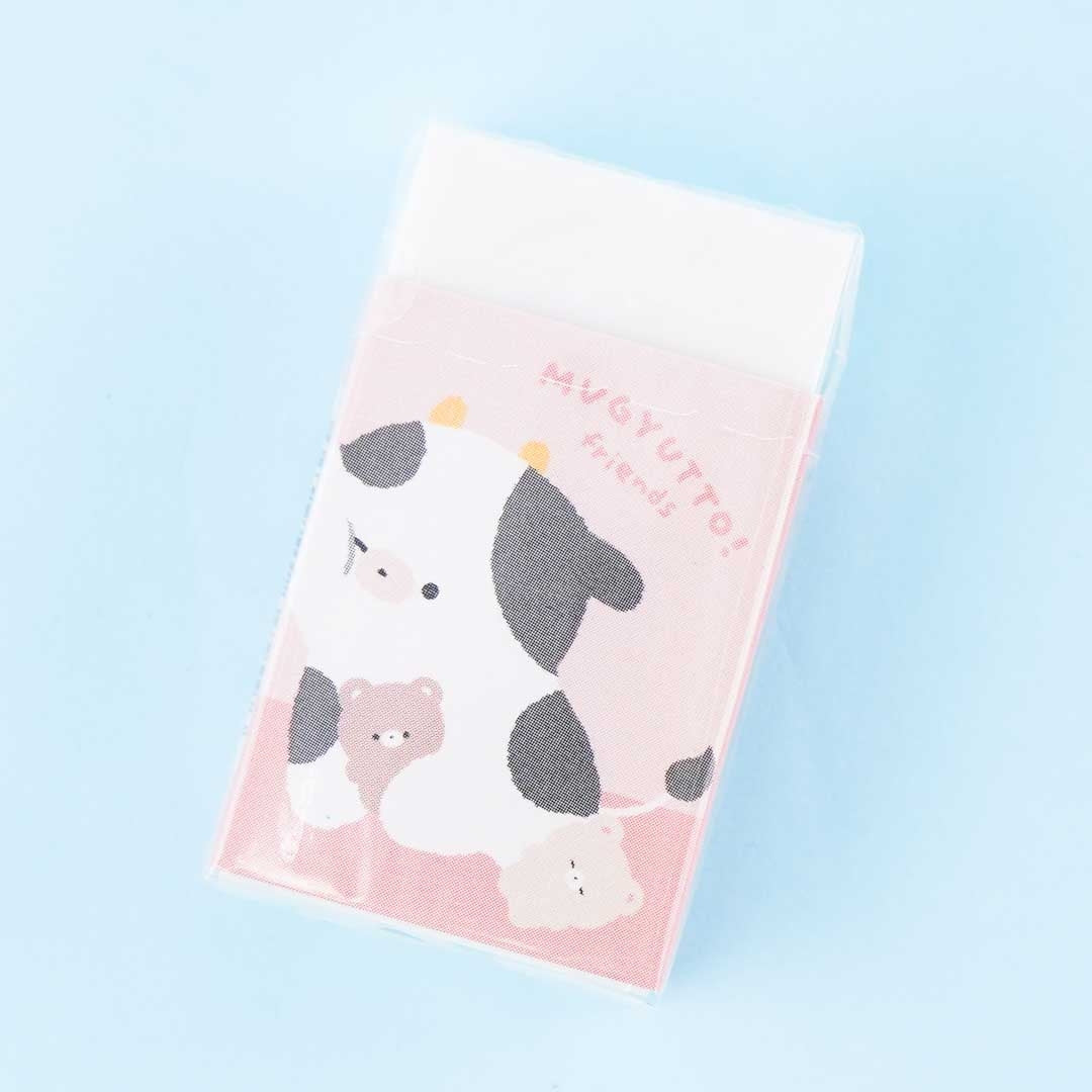 Use this handy eraser to remove mistakes from your notes! It comes with cardboard packaging with a print of a “mugyutto” or squishy cow.