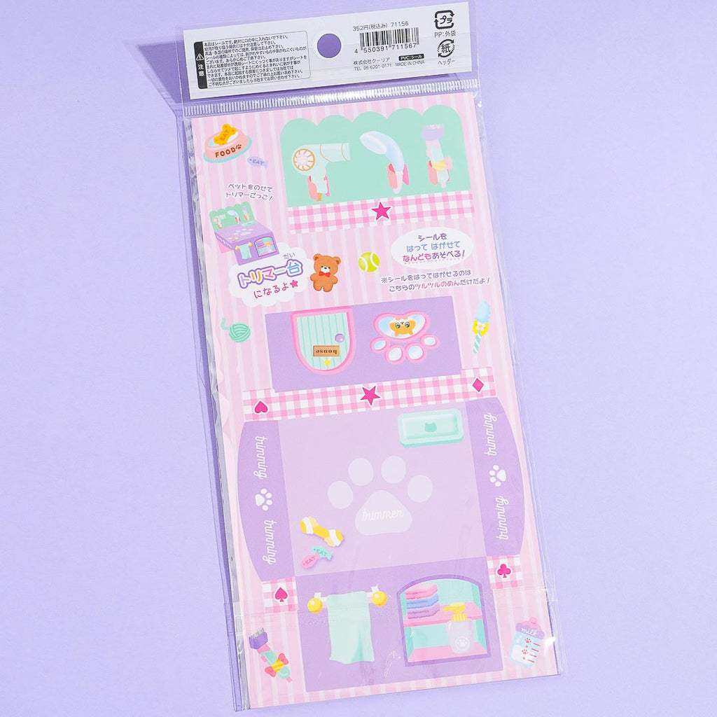 Have fun decorating and playing with these puffy stickers! They're die-cut illustrations of pets and the tools used for pet grooming. A pet salon diorama is included so you can play with the stickers and pretend to have a pet grooming business!