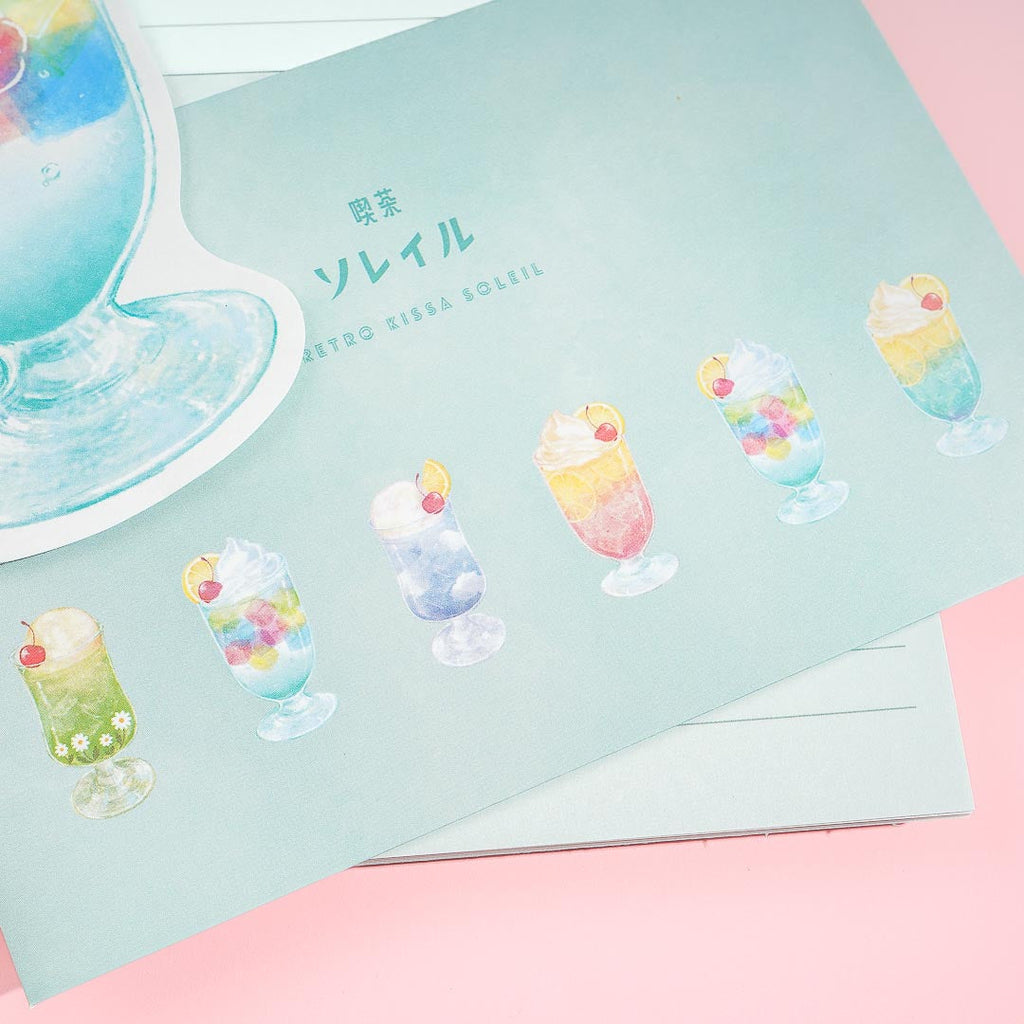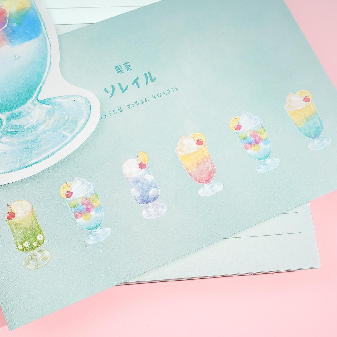 Send out handwritten letters to your loved ones using this kawaii letter set! It showcases cute illustrations of jelly punch and other sweet drinks from a retro cafe.