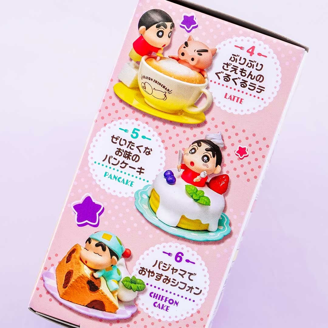 This super cute “Crayon Shin-Chan Manpuku Sweets” miniature series features Shin-chan and other characters on top of different desserts! The set includes custard pudding, jelly, cotton candy, latte, pancake, and chiffon cake!