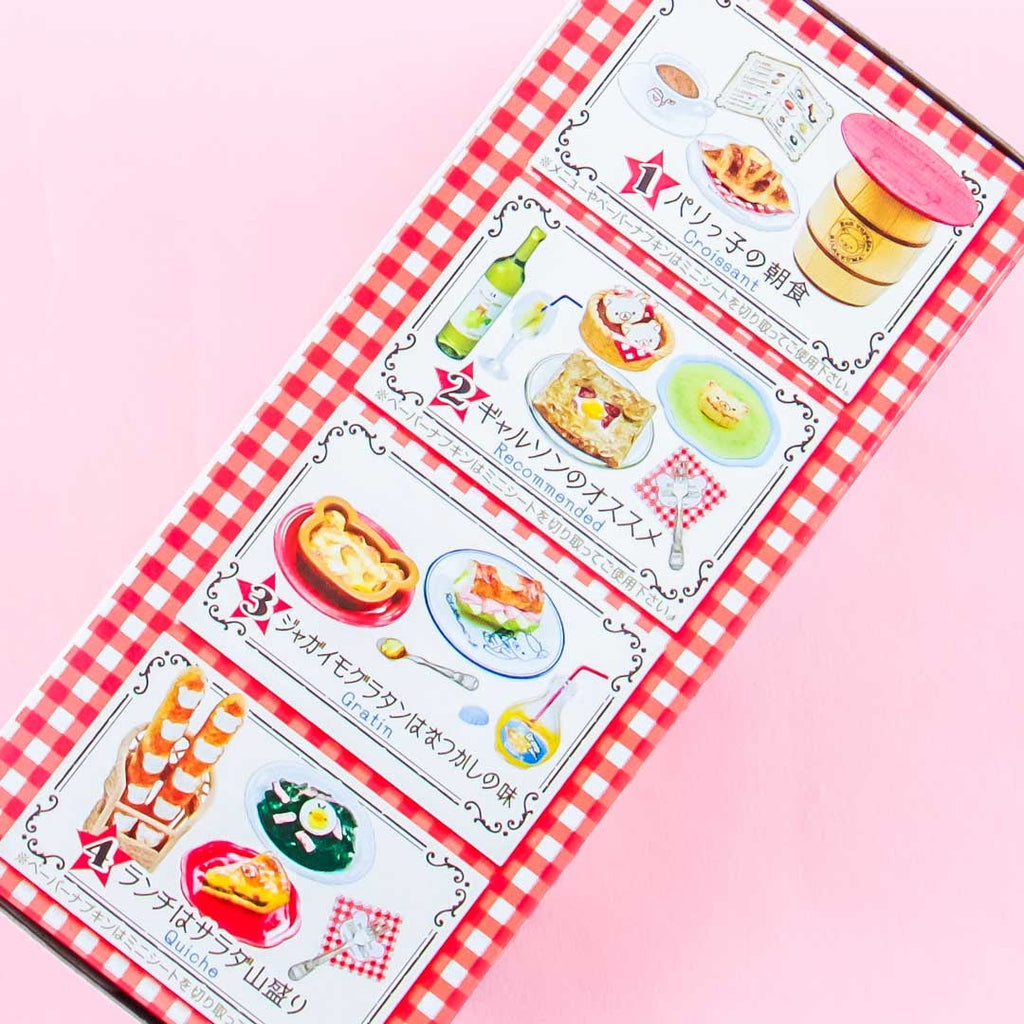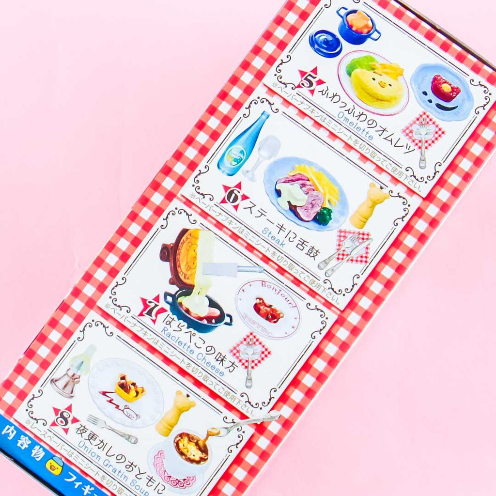 This “Rilakuma Bonjour Bistro” miniatures series features different Rilakkuma-themed French bistro dishes! The series includes a Rilakkuma croissant meal set, a French toast set, a gratin set, a quiche set, an omelette set, a steak set, a raclette set, and an onion gratin soup set. Each miniature is highly-detailed. Collect all eight miniature meal sets to complete the menu of the Rilakkuma French Bistro ! These Re-Ment miniatures are well-known keepsakes in Japan because of their cuteness and meticulous attention to detail. Each package comes blind-boxed so every order is a whimsical surprise!