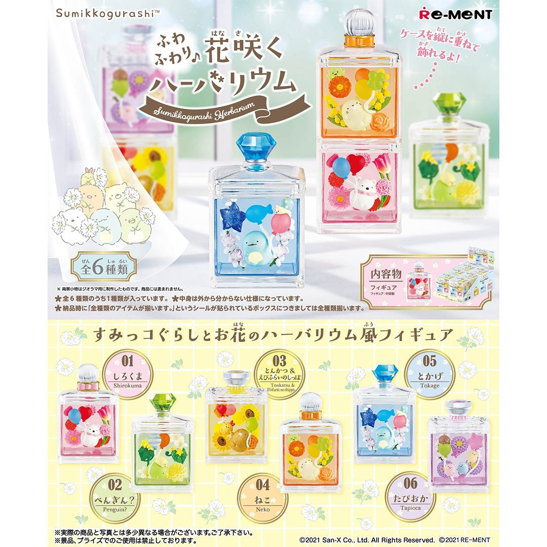 This “Sumikko Gurashi Blossoming Herbarium” miniature is a series that a Sumikko Gurashi character inside a glass bottle with plants! Characters like Shirokuma, Penguin ?, Tonkatsu and Ebifurai No Shippo, Neko, Tokage, and Tapioca — can all be seen inside an herbarium that looks like a jewel perfume bottle! Each replicated mini item is highly detailed.