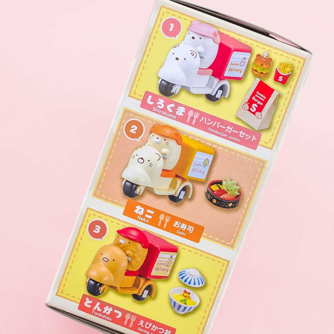 A highly-detailed miniatures featuring the Sumikko Gurashi characters as food delivery riders