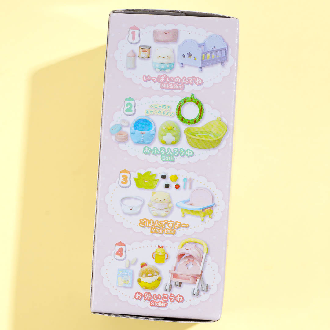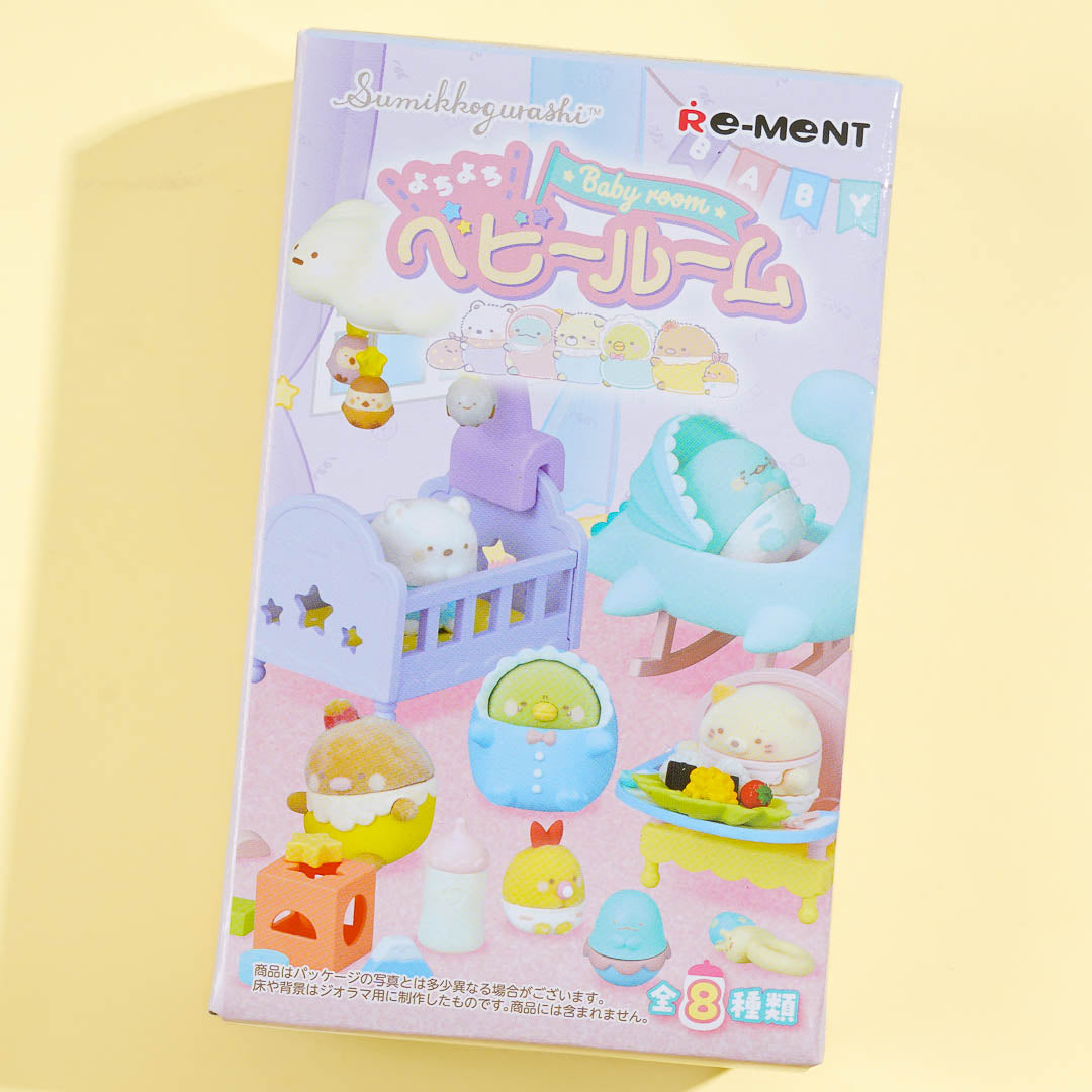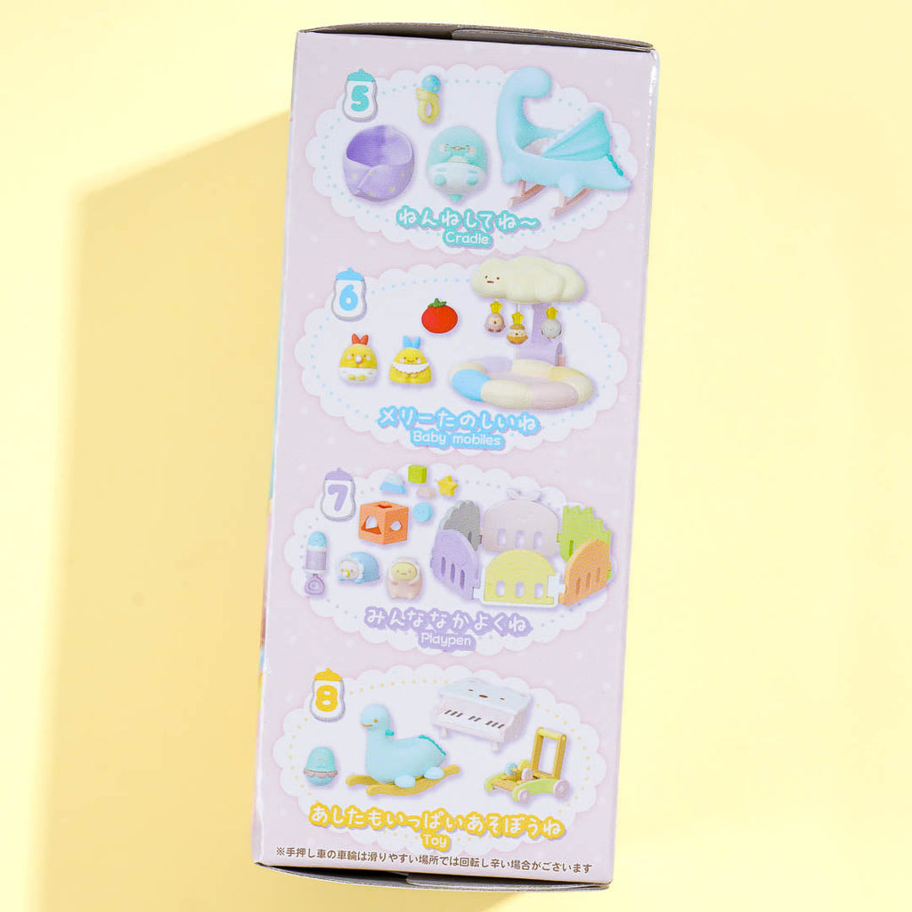 Add this kawaii miniature set to your collection! It comes from the "Sumikko Gurashi Yochi Yochi Baby Room" miniature series featuring the Sumikko Gurashi in a baby room. The Sumikko characters have a soft flocked finish and some of the pieces are movable so you can play with them! Each replicated mini item is highly detailed. There are eight super kawaii miniature sets to collect in this series to complete the Sumikko Gurashi nursery!