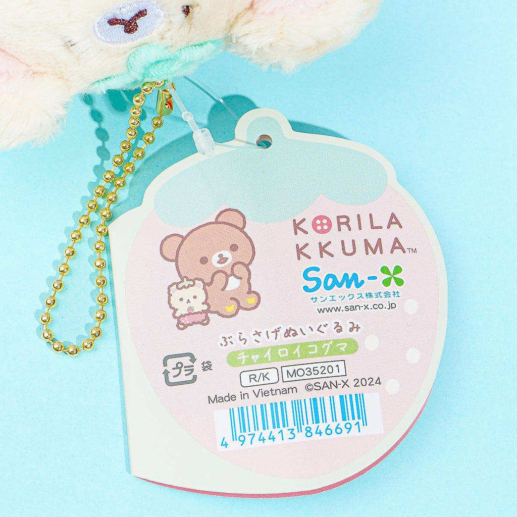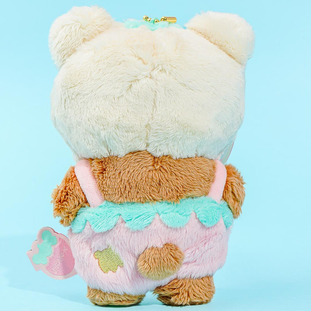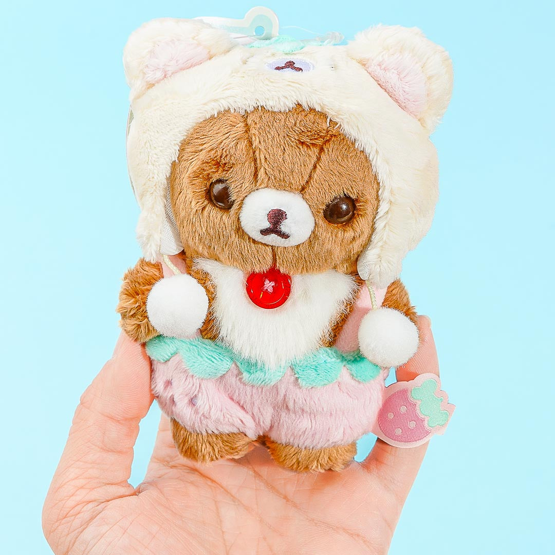 Korilakkuma loves strawberries, so Rilakkuma and friends prepared a strawberry surprise! This Chairoikoguma plushie charm is wearing a Korilakkuma and strawberry-inspired outfit. It comes with a removable ball chain so you can hang it in your room as a kawaii display!