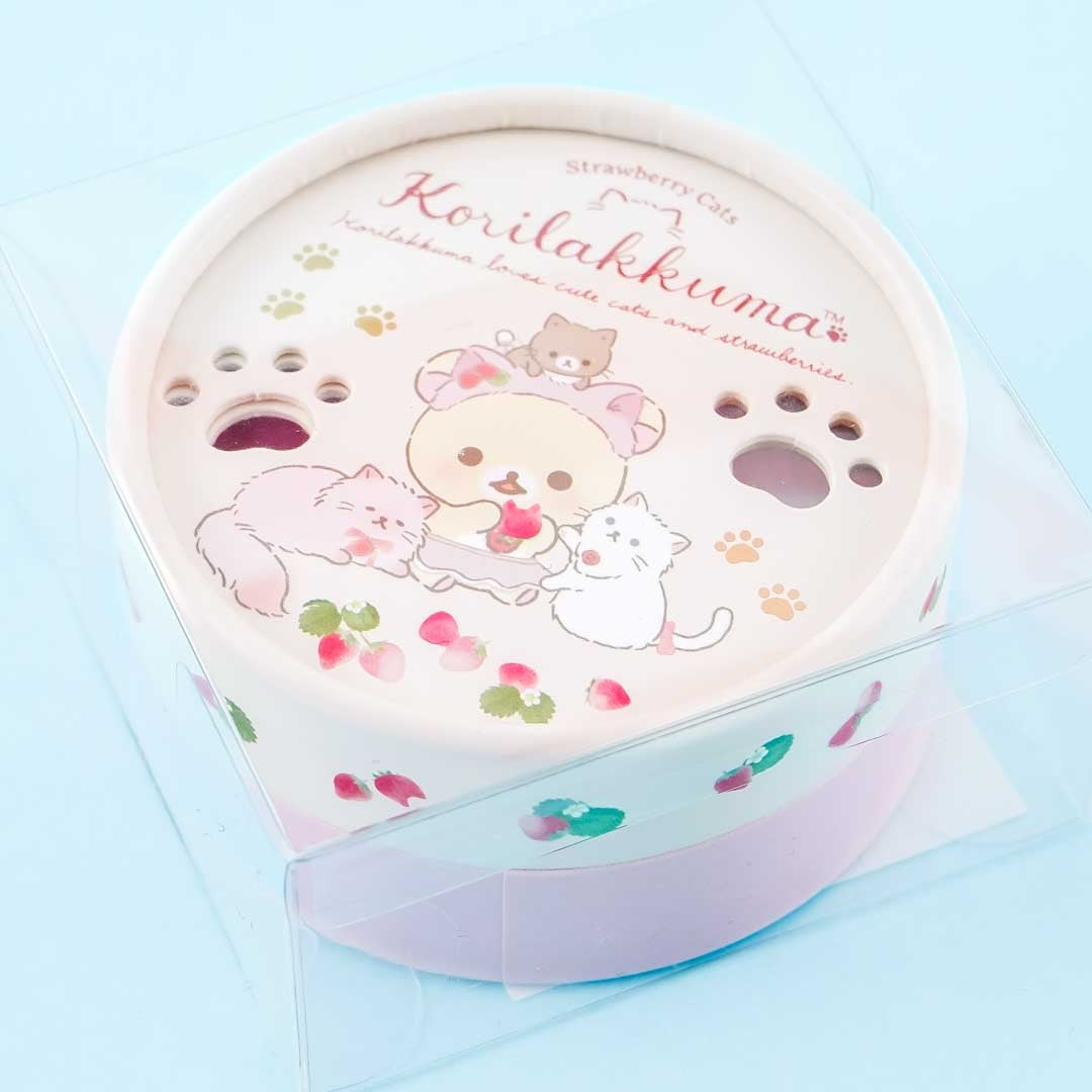 • A cute case of pressed face powder showcasing Korilakkuma having fun with cats and strawberries