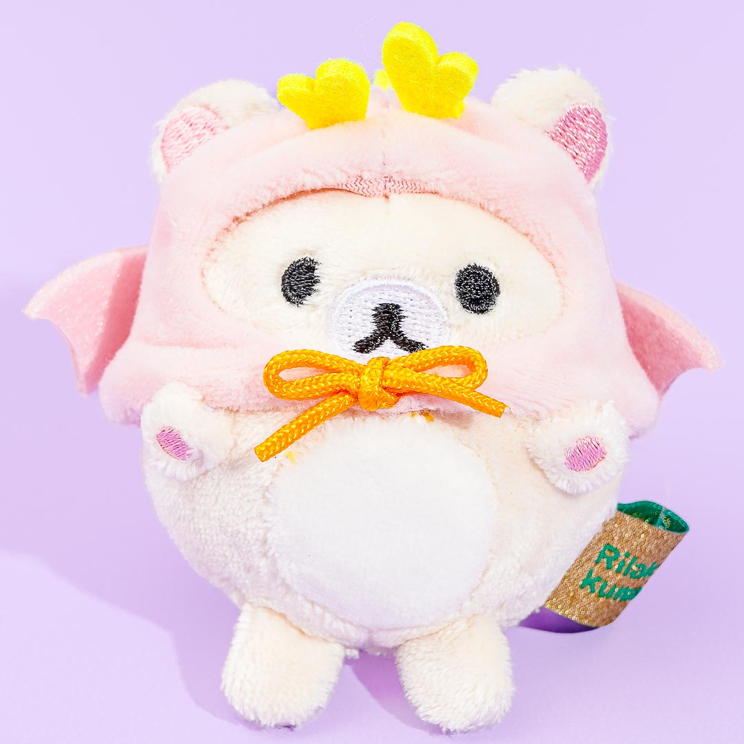 This round-shaped Korilakkuma plushie is wearing a dragon costume. Have fun squeezing this mini cutie that fits the palm of your hand!