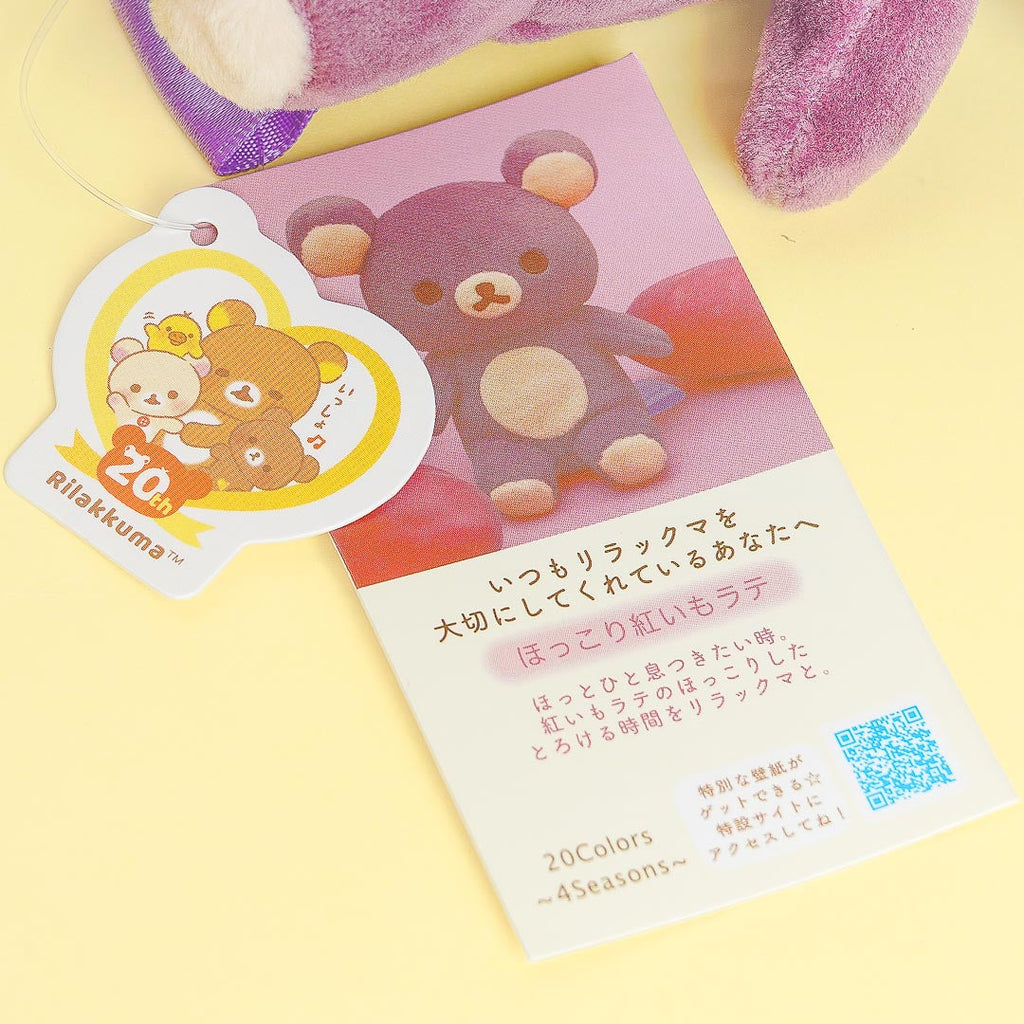 Add this super cute Rilakkuma autumn plushie to your collection of kawaii goodies! This sweet potato latte-colored stuffed toy was made in celebration of Rilakkuma's 20th anniversary. Take this medium-sized cutie out on nice picnics with friends while you watch the leaves change color!