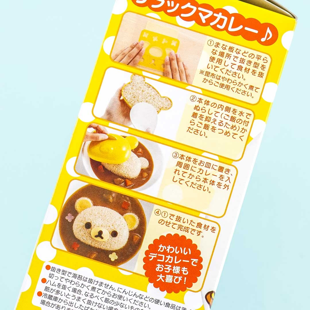 Have fun making curry by using this decorating set! It comes with a rice mold shaped like Rilakkuma's head with one decorative punch mold. This set is not recommended for dishwasher, dryer, and microwave use.