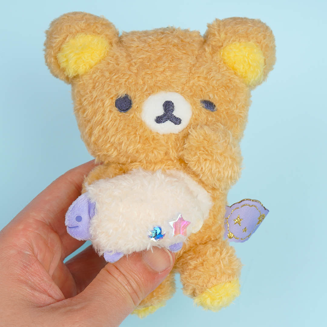 This Rilakkuma plush charm is ready to count sheep before it sleeps. You can take it along with you when you head off to the cafe! Attach it to your favorite bag with its removable ball chain.