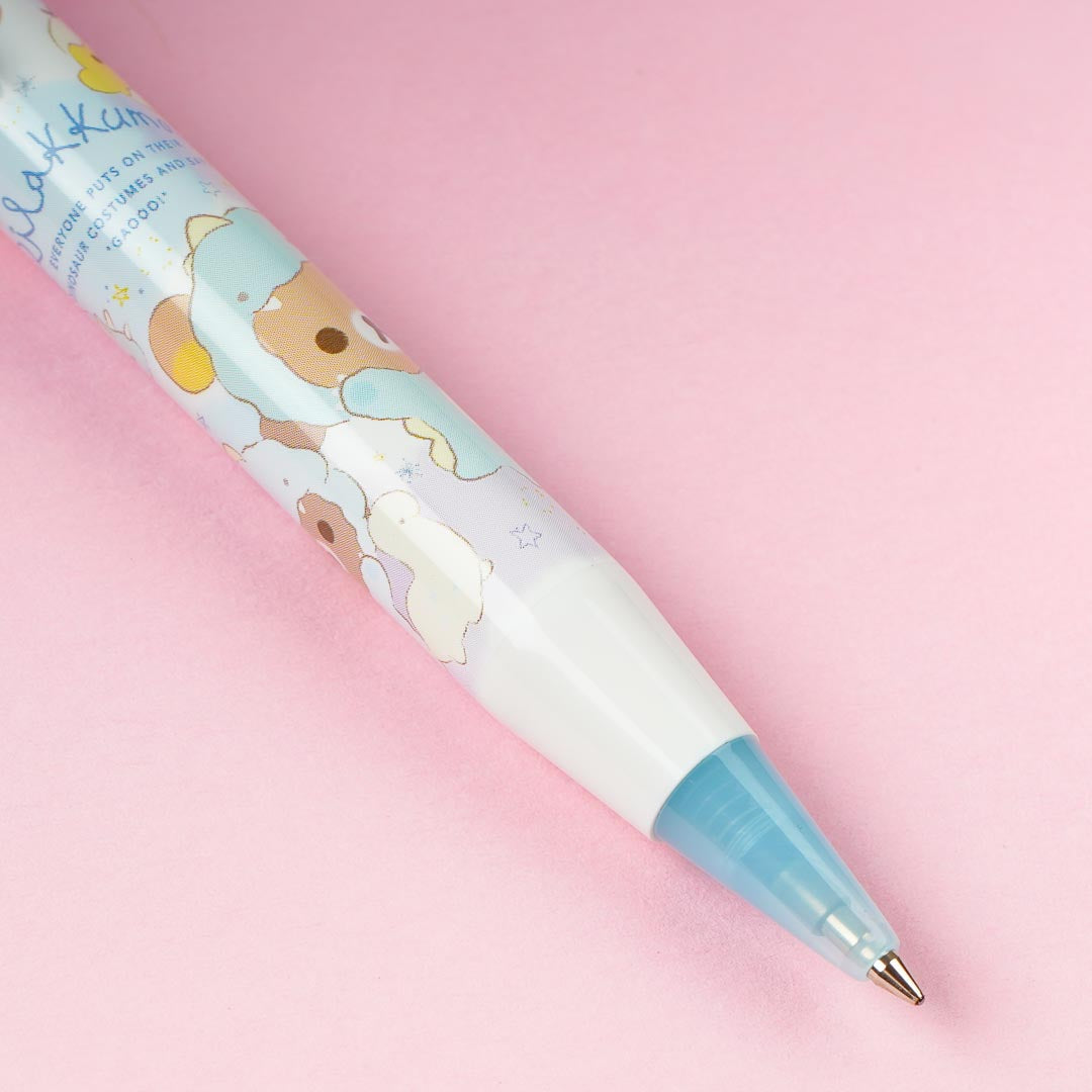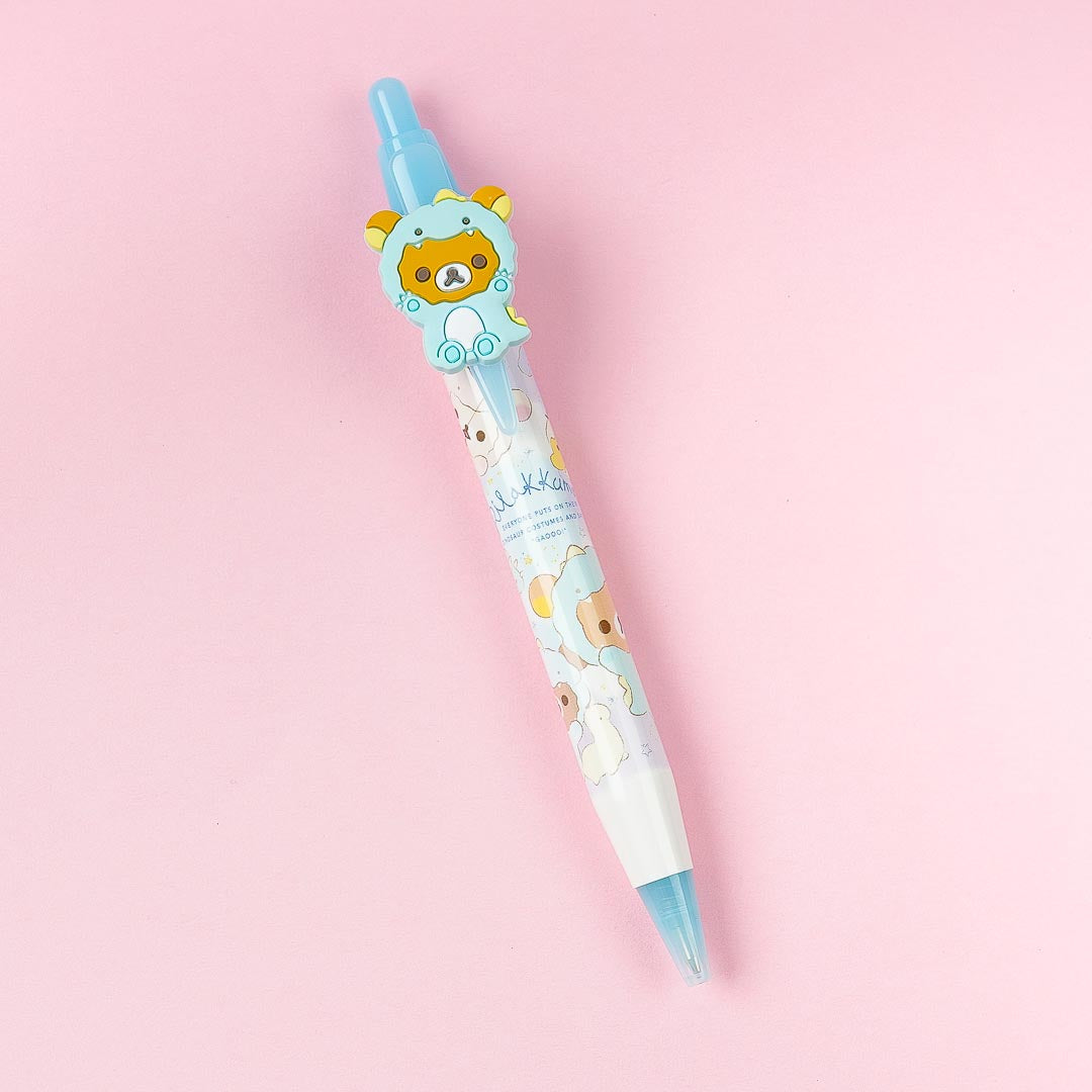 This kawaii click ballpen is perfect for writing fanfiction about your favorite anime! It's decorated with illustrations of Rilakkuma wearing a cute dinosaur costume.
