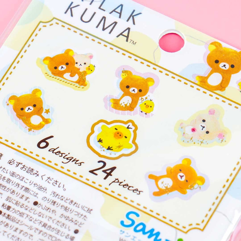 A pack of deco stickers featuring Rilakkuma and his friends
