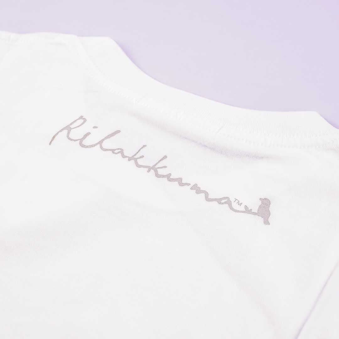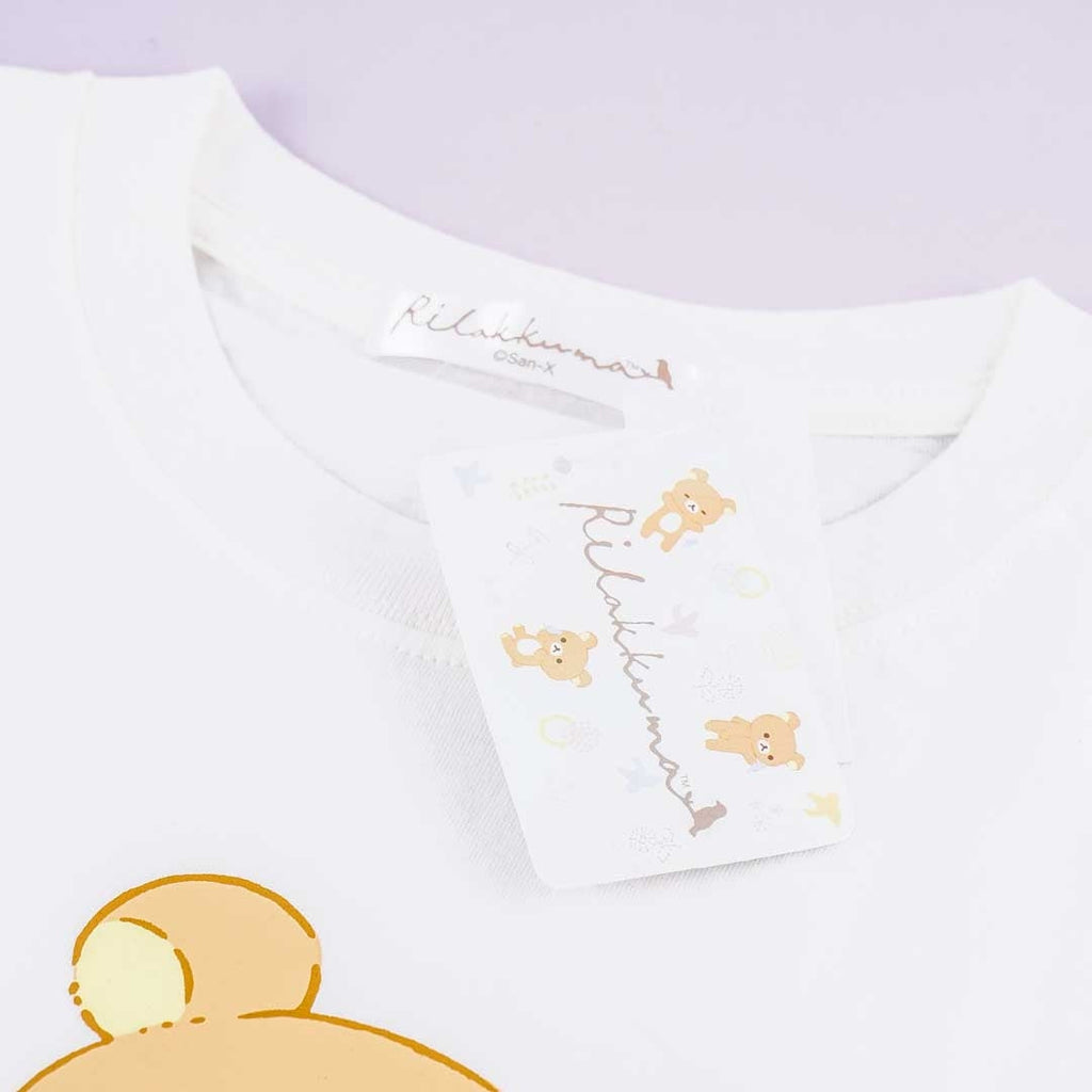 A super cute white t-shirt featuring an illustration of Rilakkuma