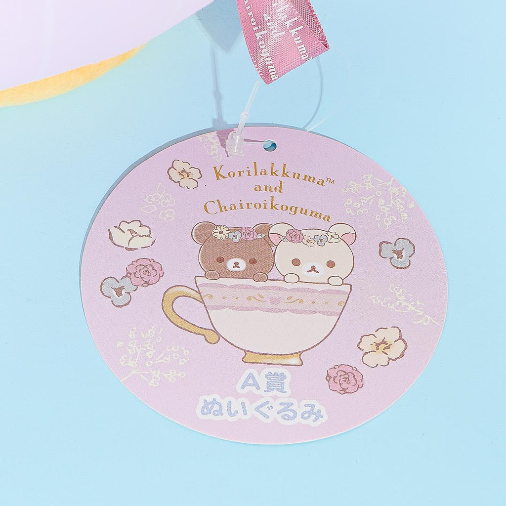 This Rilakkuma plushie looks like it's inside a floral teapot with a lid on its head. It comes in a big size that's perfect for cuddling! This cute design comes from the Rilakkuma "Korikoguma Flower Tea Time" series and was was featured as a prize for the Neo Relax Lottery Part 5.