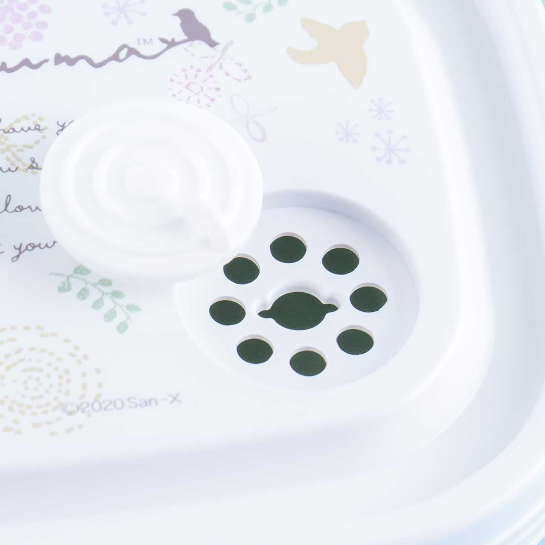 Have a healthy and hearty lunch using this super kawaii bento box featuring prints of Rilakkuma enjoying the fresh air with the birds and leaves! It features a lid with an air valve so you can let out steam. The bento box also has a detachable divider so you can apportion your food properly. You can heat your meals in the bento box with the lid on.