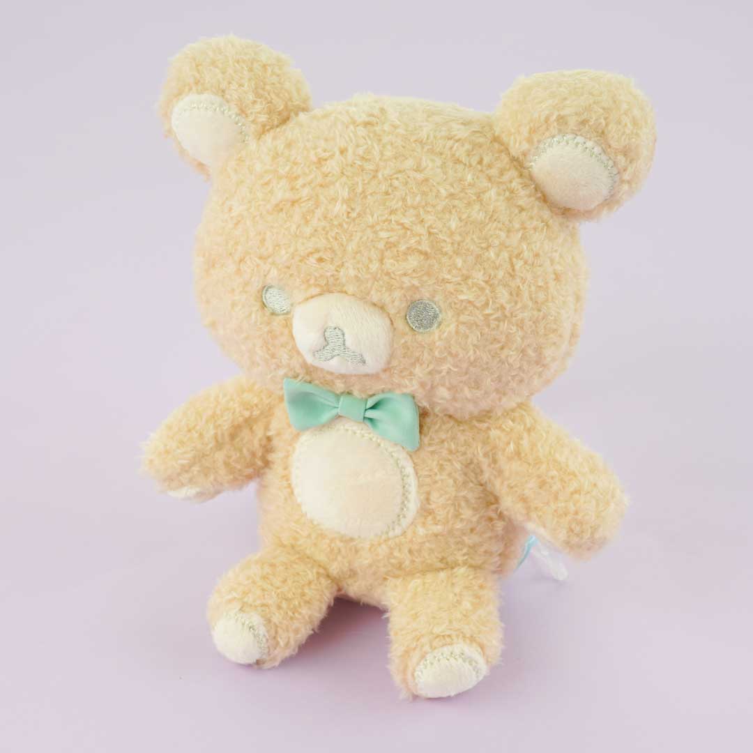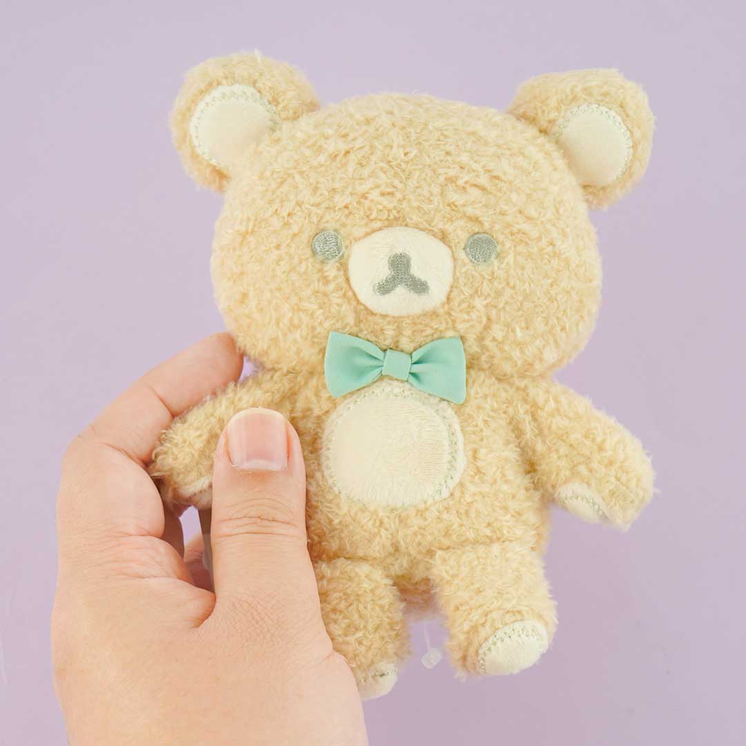 Enjoy creating lots of poses for this special Rilakkuma plushie! This medium-sized cutie has movable arms and limbs and is wearing a mint green bow tie.