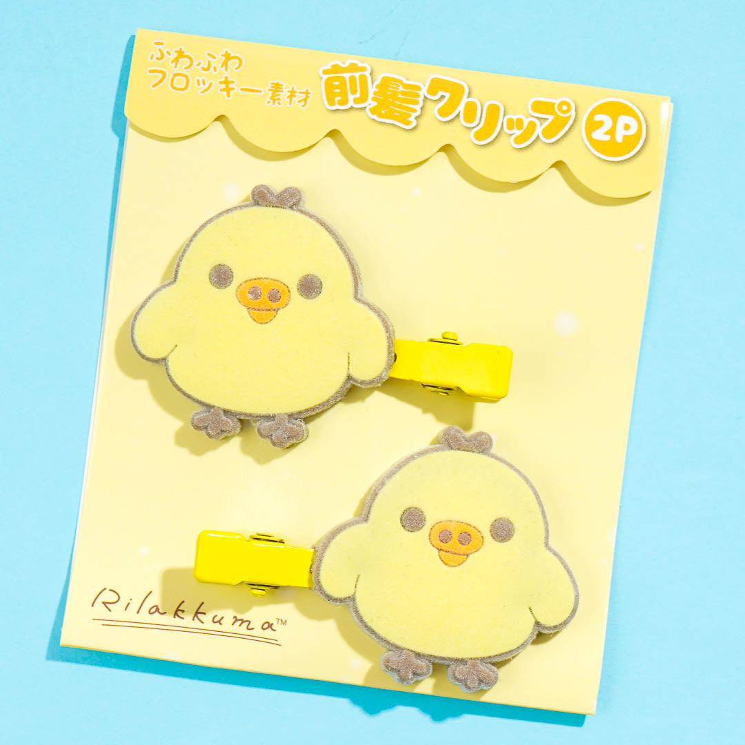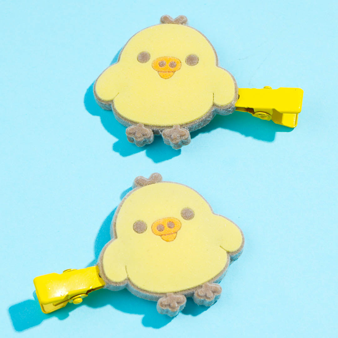 Keep your bangs away from your face using these super cute hair clips! They feature Kiiroitori charms with a velvety texture.