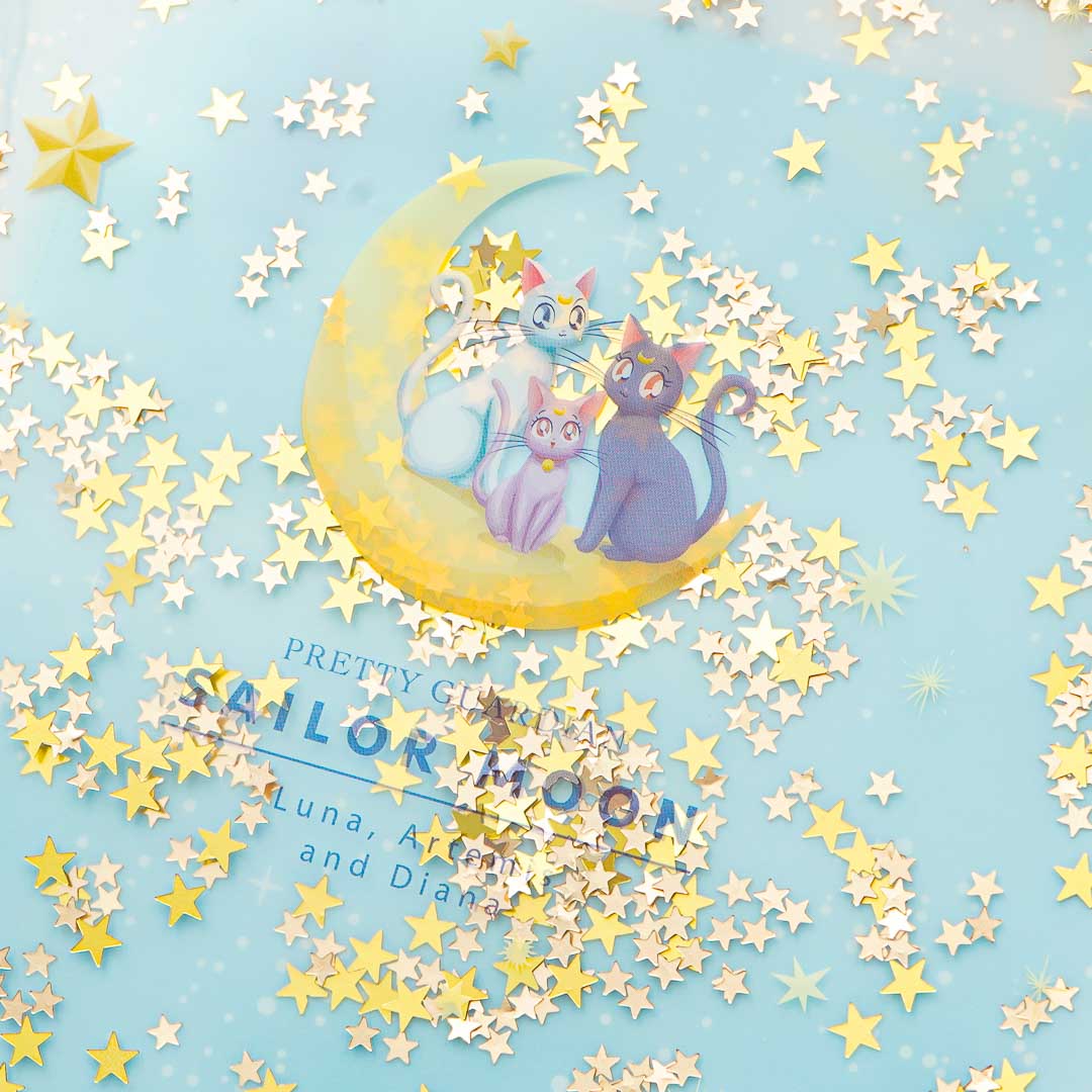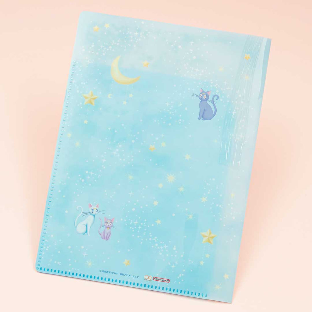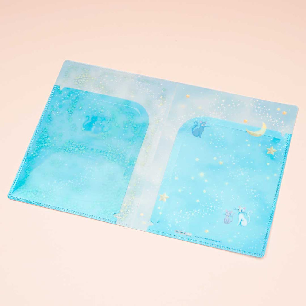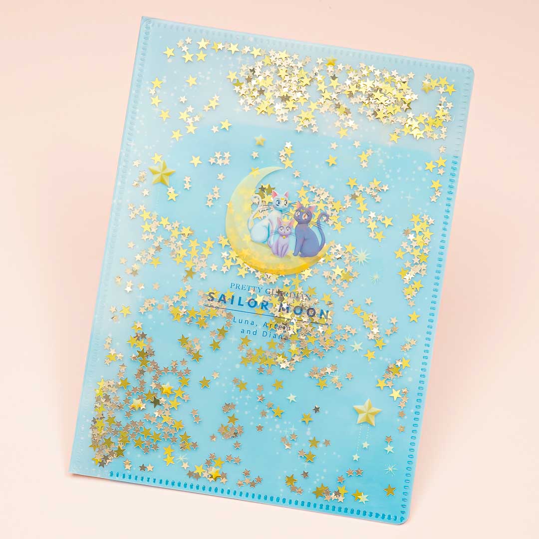Organize your important documents using this blue index folder! It’s decorated with an illustration of the Sailor Moon cat characters Artemins, Diana, and Luna, plus lots of gold star-shaped sequins.