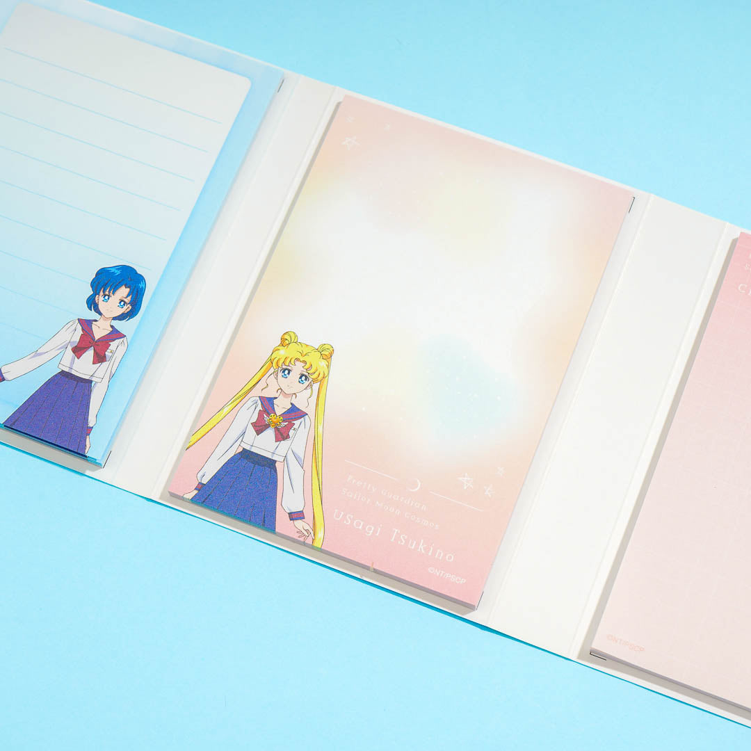 This kawaii memo pad set features the characters from the 2023 animated Sailor Moon movie, Sailor Moon Cosmos. It includes 6 memo pads inside a folding case. Use these memo pads to write down important notes and reminders!