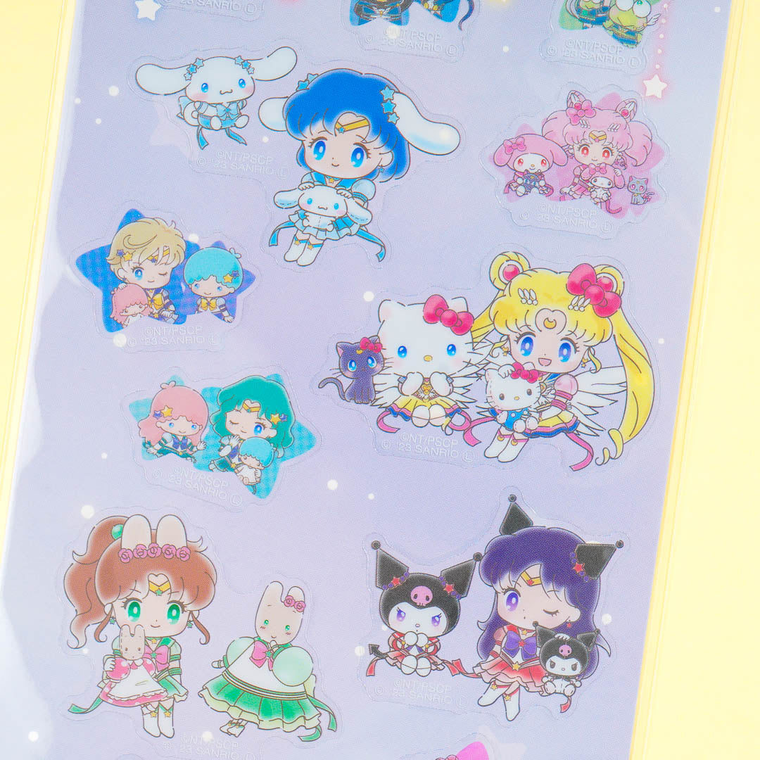 This cute sheet of stickers features Sailor Moon and Sanrio Characters dressed as each other! Use the die-cut stickers to decorate your notebooks.