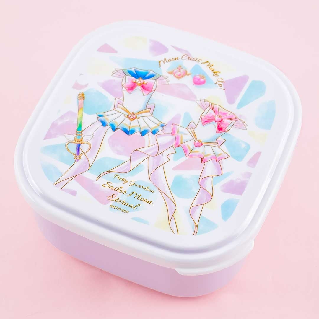 A set of cute food containers with illustrations of Super Sailor Moon and Super Sailor Chibi Moon’s magical items