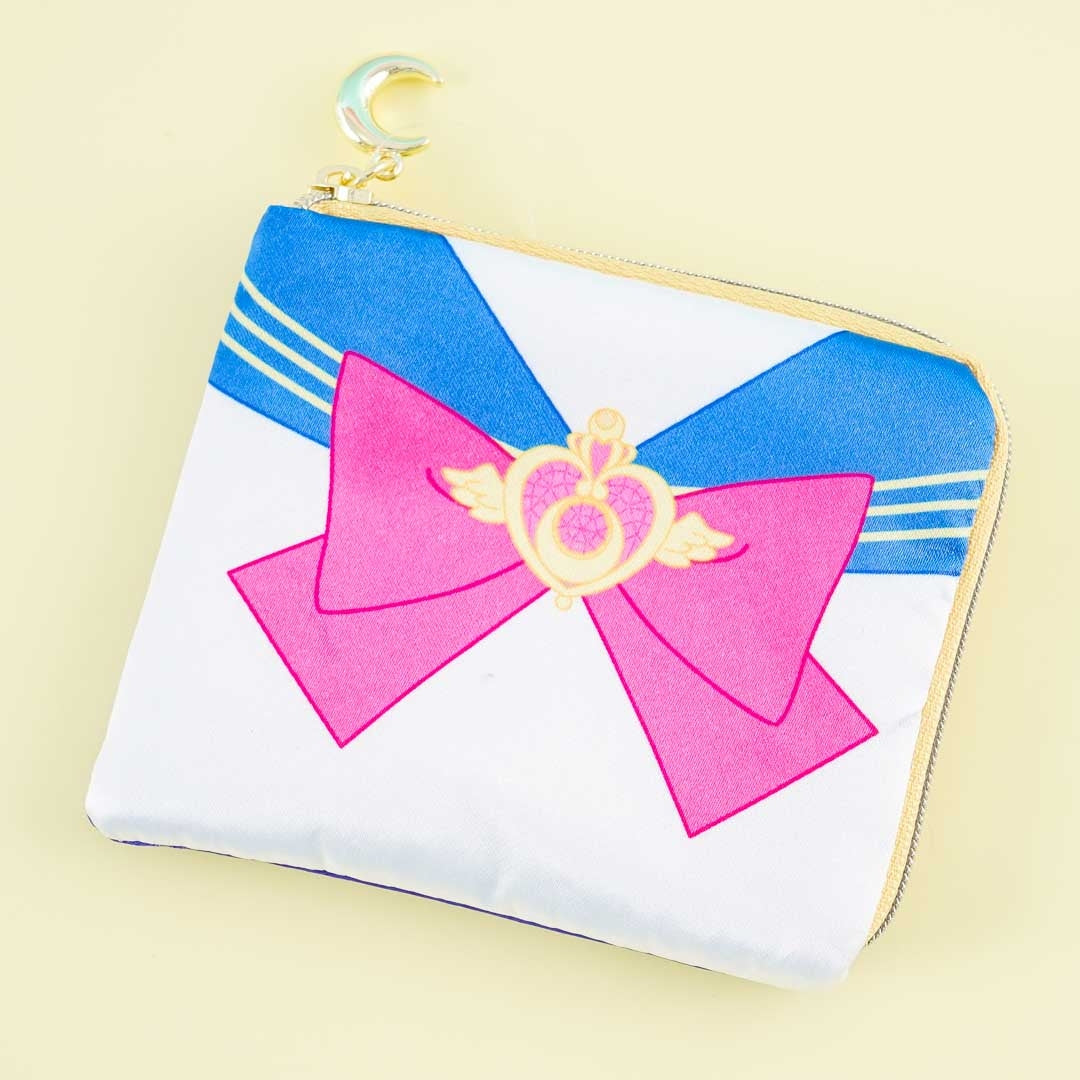 Use this kawaii pouch to store your travel cards or spare coins. It features a print of Usagi Tsukino's outfit from Sailor Moon! It comes with a zipper closure and a golden moon charm!