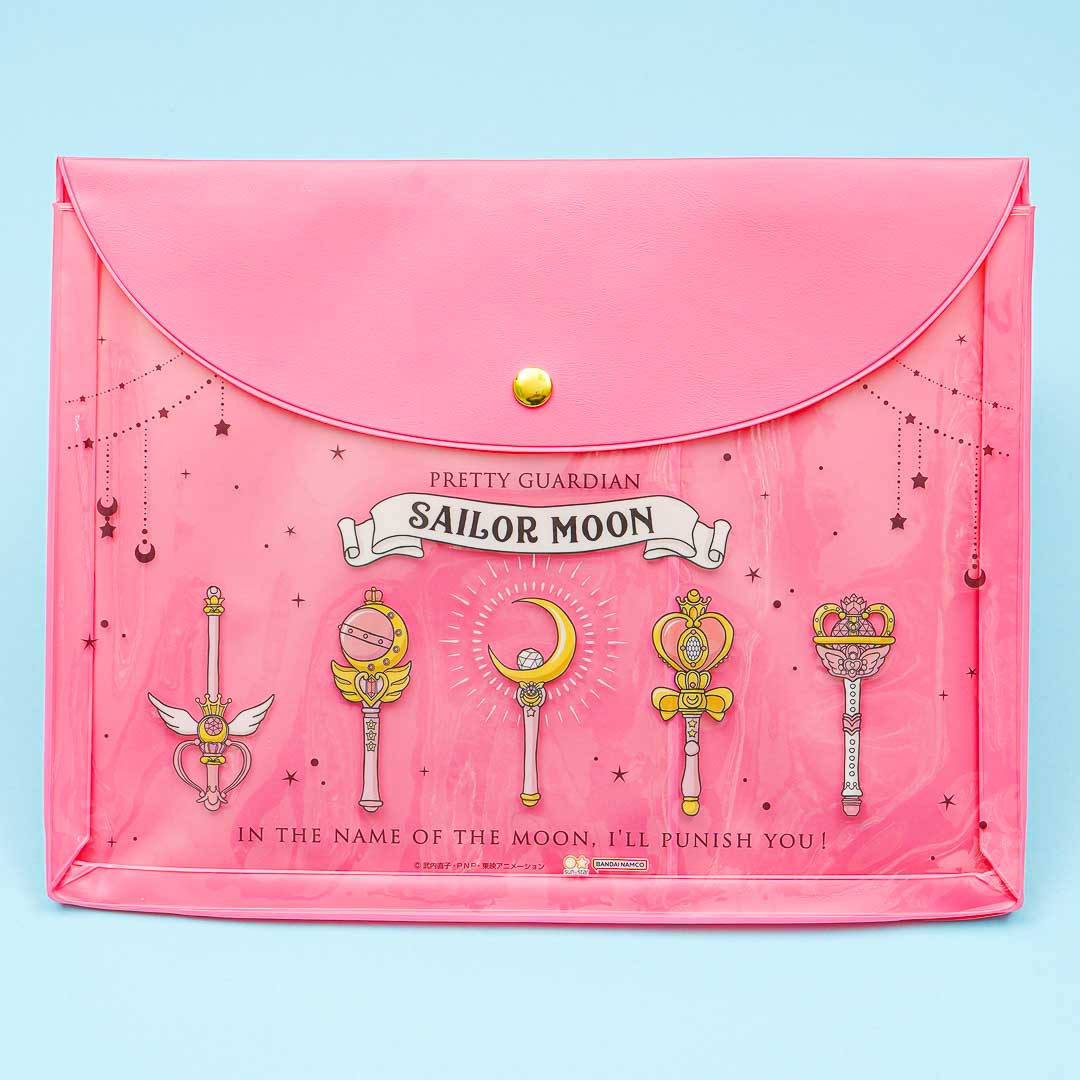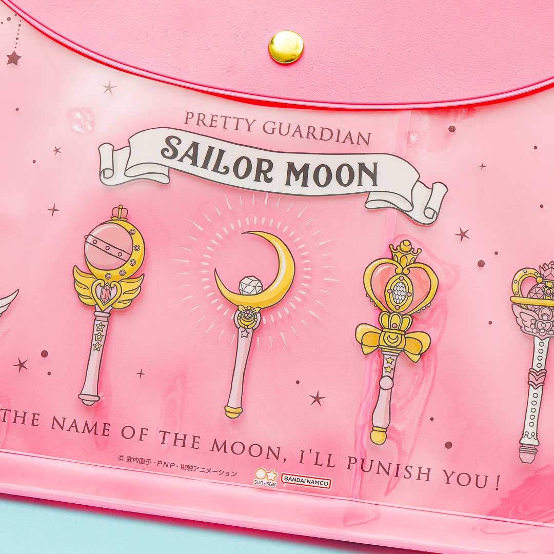 This cute flat pouch showcases prints of the different Sailor Moon wands! Use it to bring along your stationery kit. It can easily fit an A5 notebook with other small things.