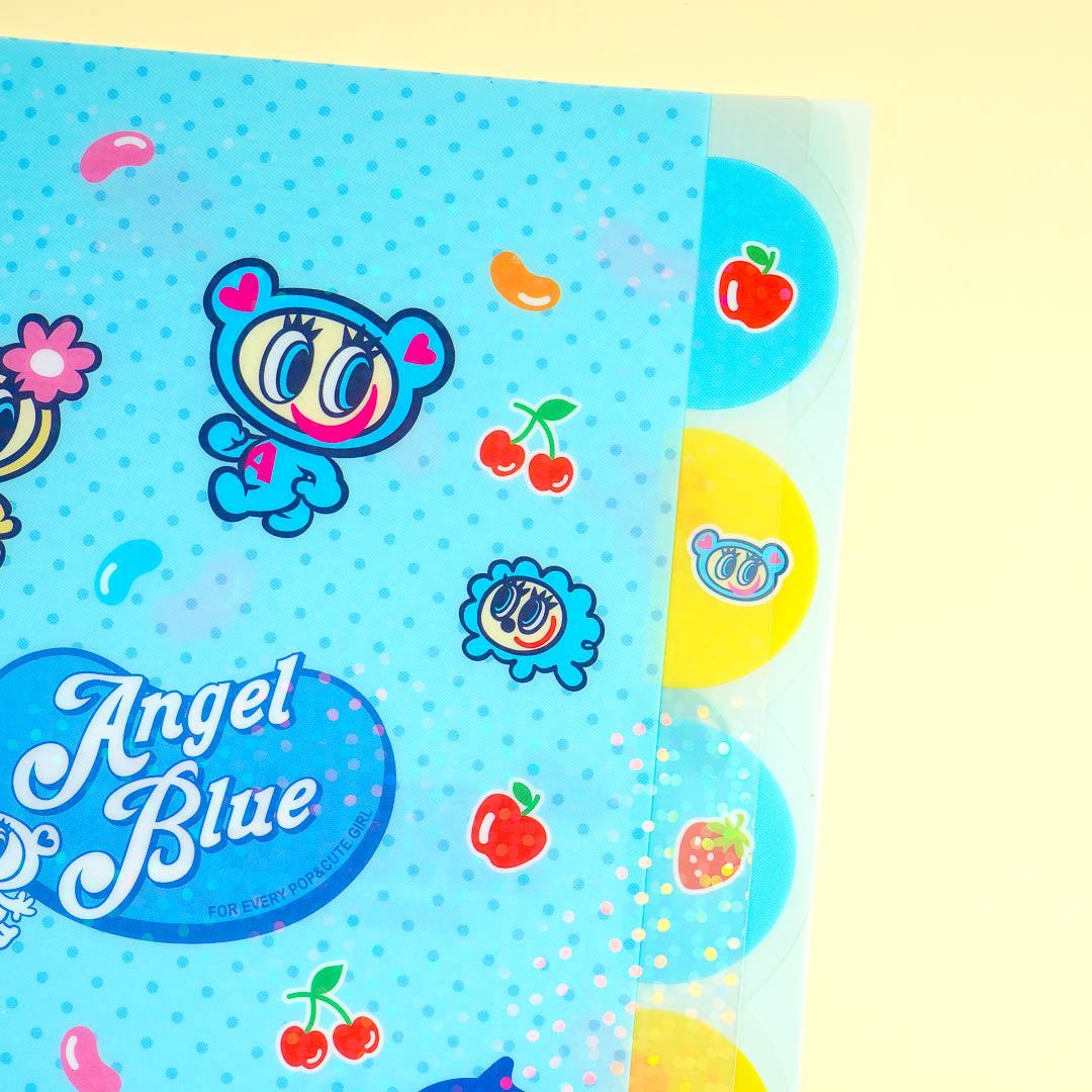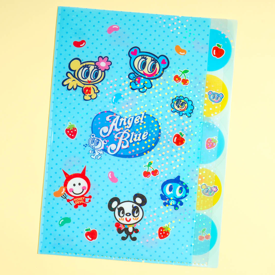 Organize your important documents inside this super cute index folder with five pockets and matching right-side tabs! It's made of semi-transparent plastic and features illustrations of Angel Blue characters and fruity jelly beans.