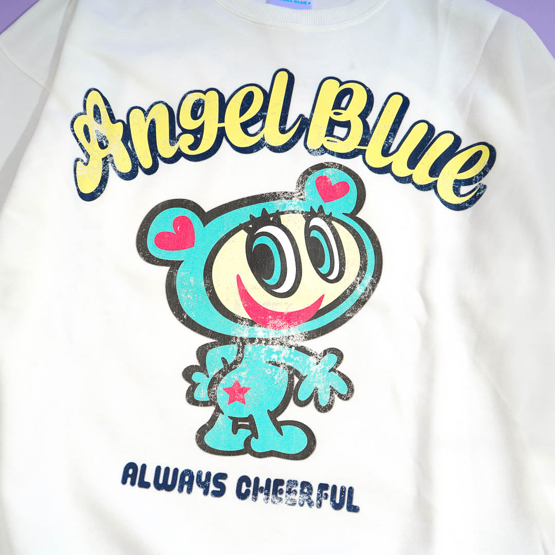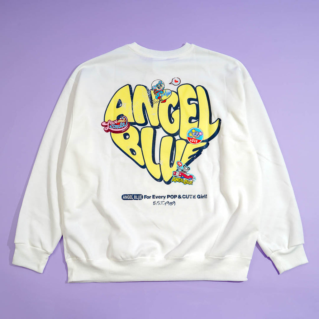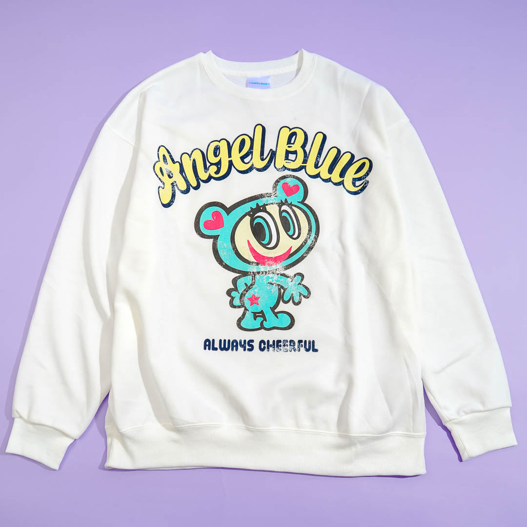Stay cozy and stylish with this oversized off-white sweatshirt! It features vintage-style prints of Angel Blue's character Nakamura-kun and its heart-shaped logo. It's made of soft and elastic silk fiber that's extremely comfortable to wear!