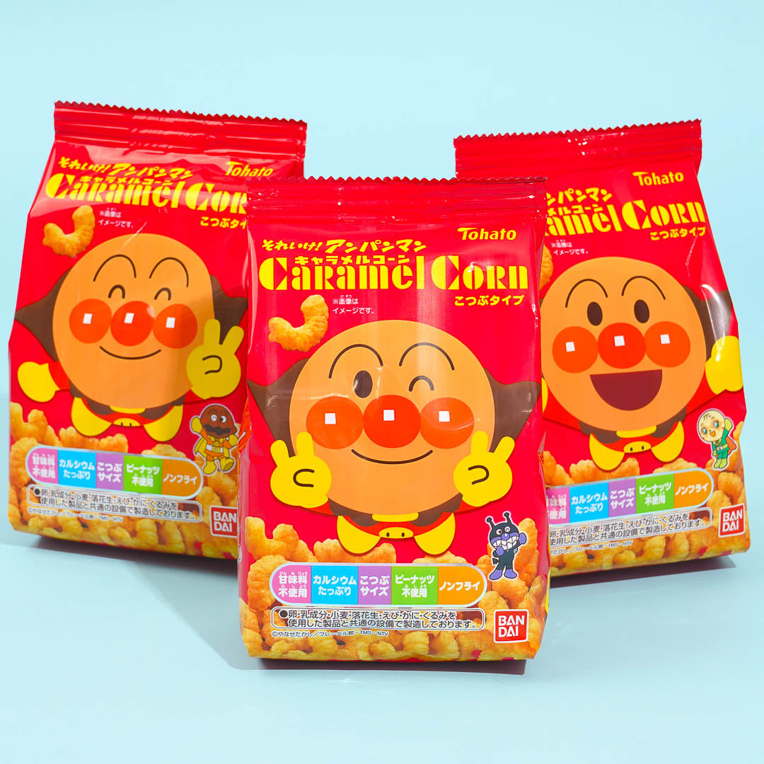 This light and crispy salty caramel snack features the popular Anpanman on its packaging! It's a non-fried corn snack that contains calcium and is sweetener-free, making it great for children.