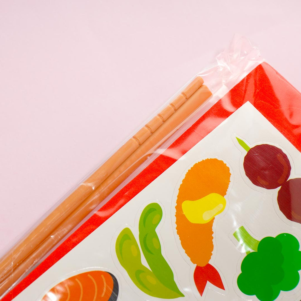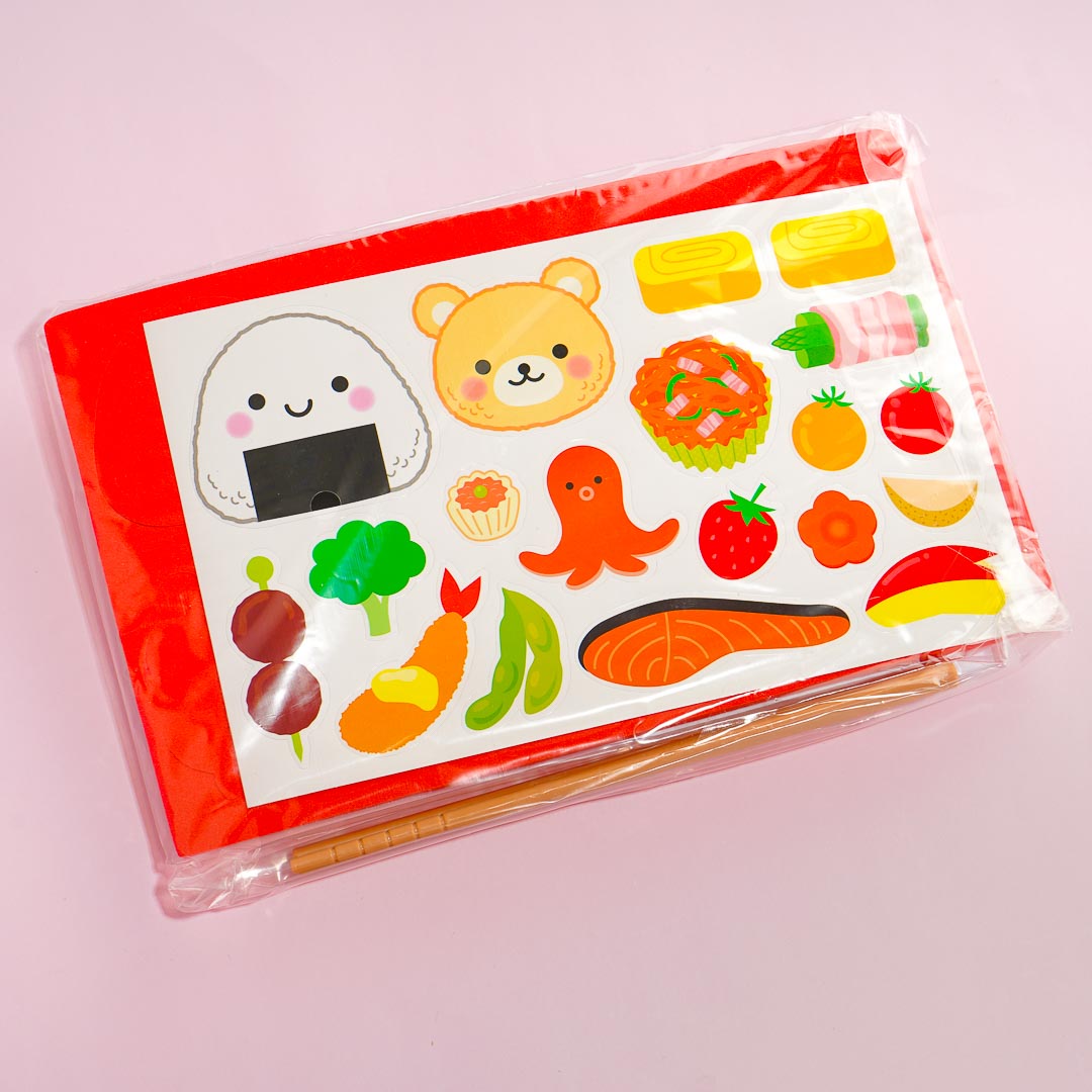 Enjoy creating your own pretend bento with this kawaii game set! It comes with toy food parts, colorful stickers, and even a pair of mini chopsticks!