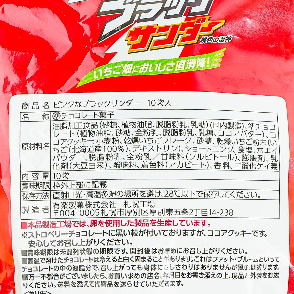 Have fun munching on this delicious chocolate snack! The original Black Thunder cocoa cookie bar is coated with sweet and sour strawberry chocolate. It's made with Hokkaido strawberries, fresh cream, and milk.