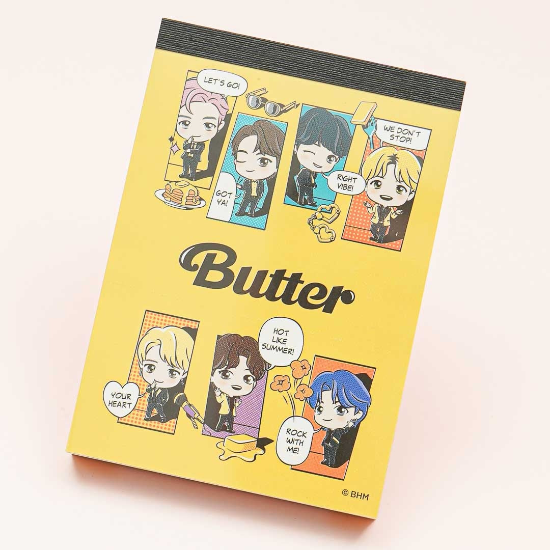This kawaii memo pad has a butter yellow cover and comes with two different sheet designs that feature kPop supergroup BTS as their TinyTAN Butter MV version! Write important reminders on these illustrated sheets.