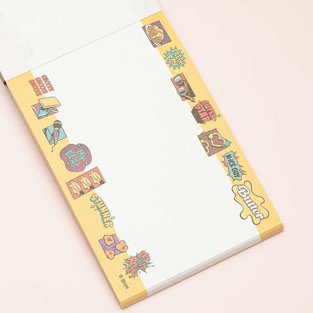 A super cute memo pad with a yellow cover featuring the BTS’ TinyTAN Butter MV version