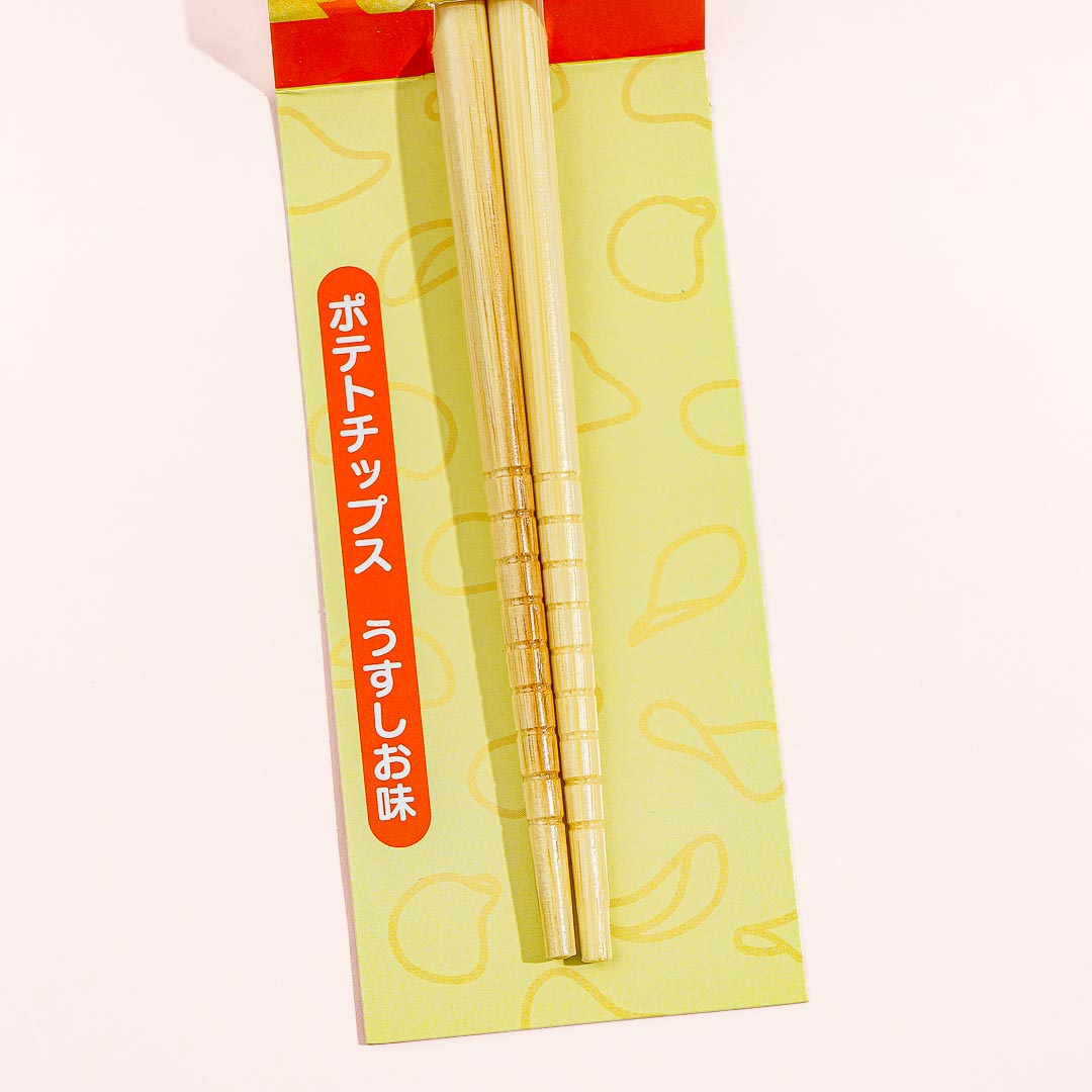 Take these kawaii bamboo chopsticks with you whenever you want to eat sushi! It’s decorated with a cute illustration of the packaging of Calbee Lightly Salted Potato Chips The pair is reusable and has a non-slip tip.