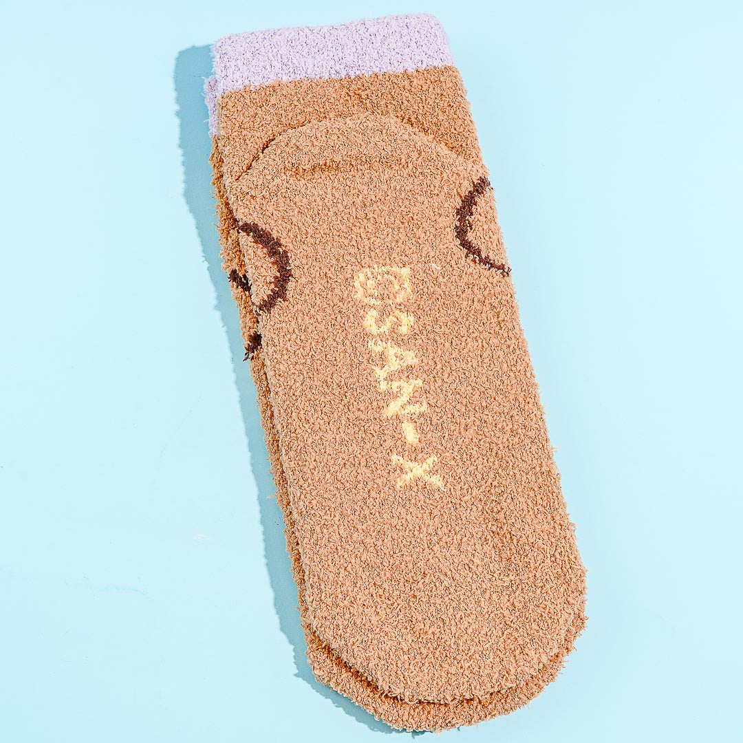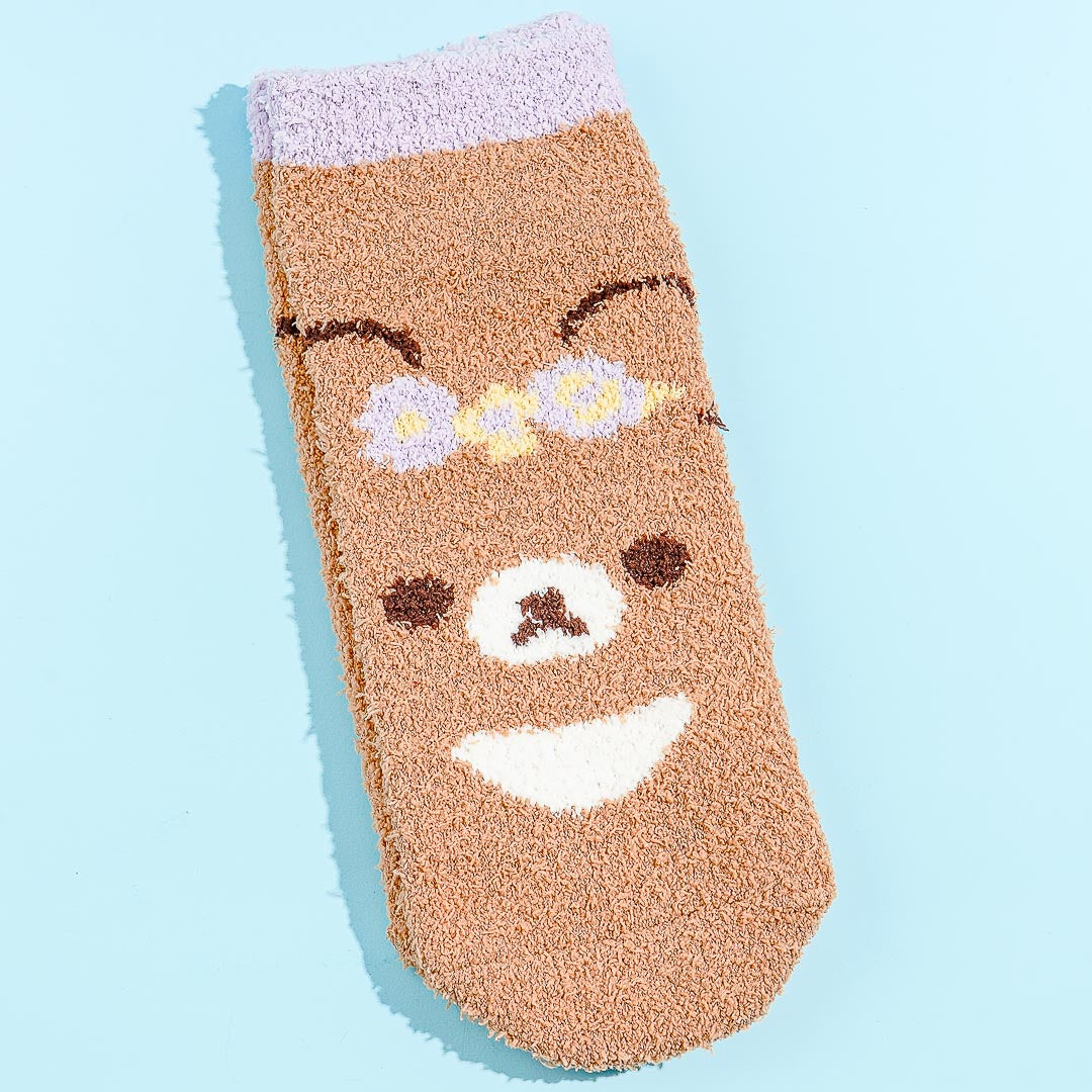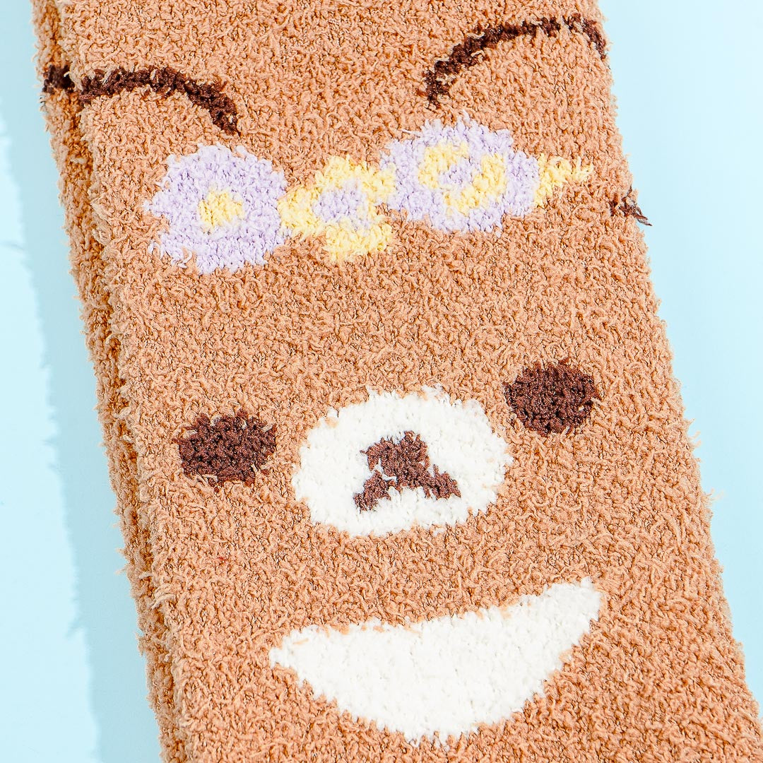 This kawaii pair of fluffy socks has a cute illustration of Chairoikoguma wearing a flower crown! Wear these cute socks from the “Korilakkuma & Chairoikoguma Korikogu Flower Time “collection to keep your feet warm during cold nights.