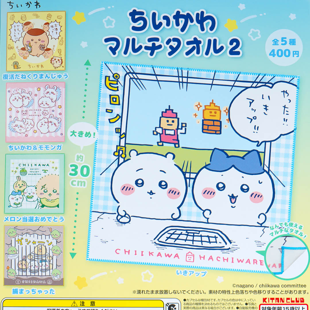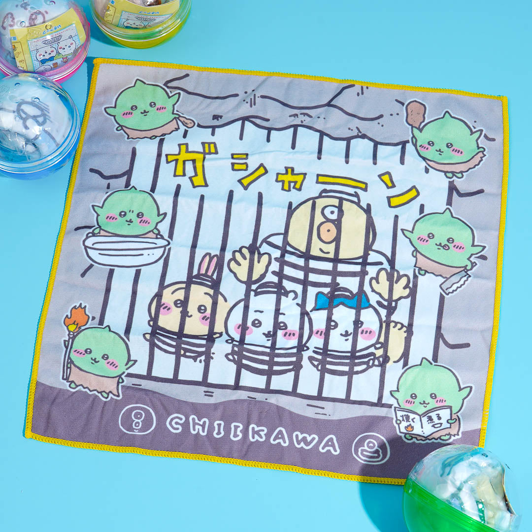Wipe off your sweat using this cute mini towel! It features illustrations of different scenes from the Chiikawa anime series. The towel comes in a gachapon capsule so you'll get a surprise design!