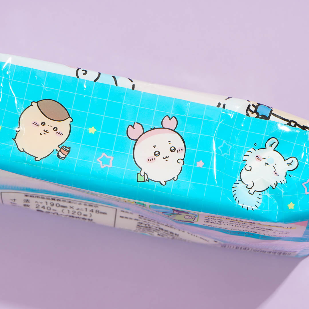 Take this pack of tissue paper with you while you're out traveling with your kawaii buddies. It features prints of Chiikawa and his friends. Use it to dry your hands after washing them!