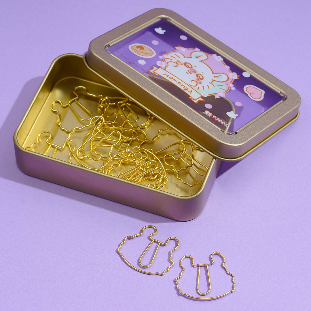 Organize your documents using these super cute paper clips! They're shaped like Momonga, the cutie from the manga Chiikawa. These clips come in a cute tin box where you can easily store them when not in use!