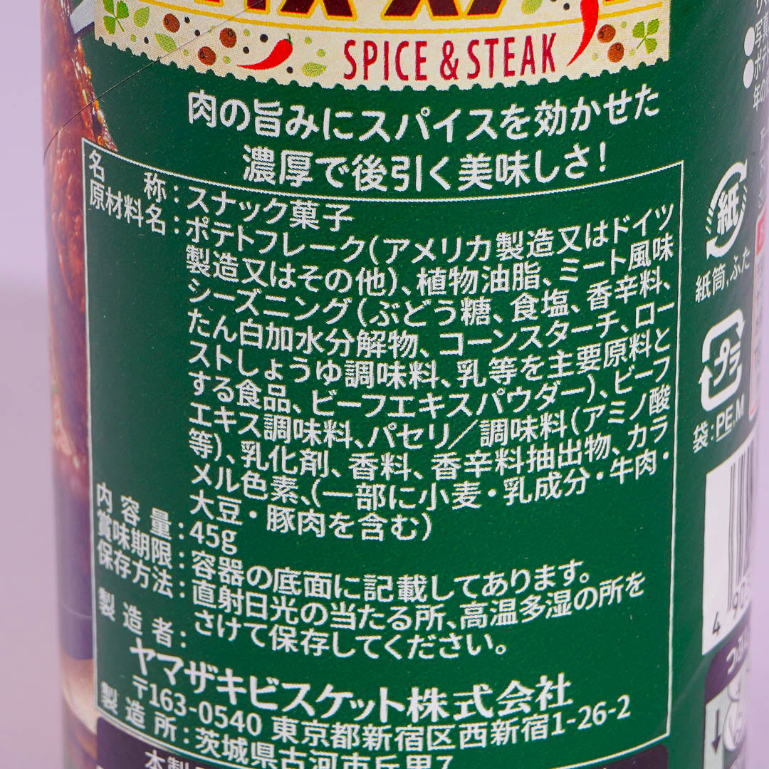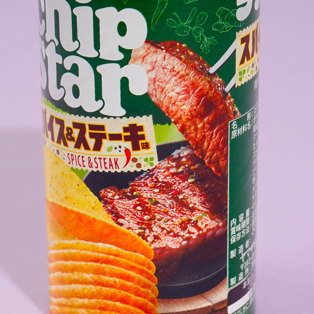 Bring this potato chip snack on your next camping trip! Each piece is coated with a spice and steak seasoning made with beef extract. This snack comes in a handy cylinder tube with a lid so you can easily bring it!