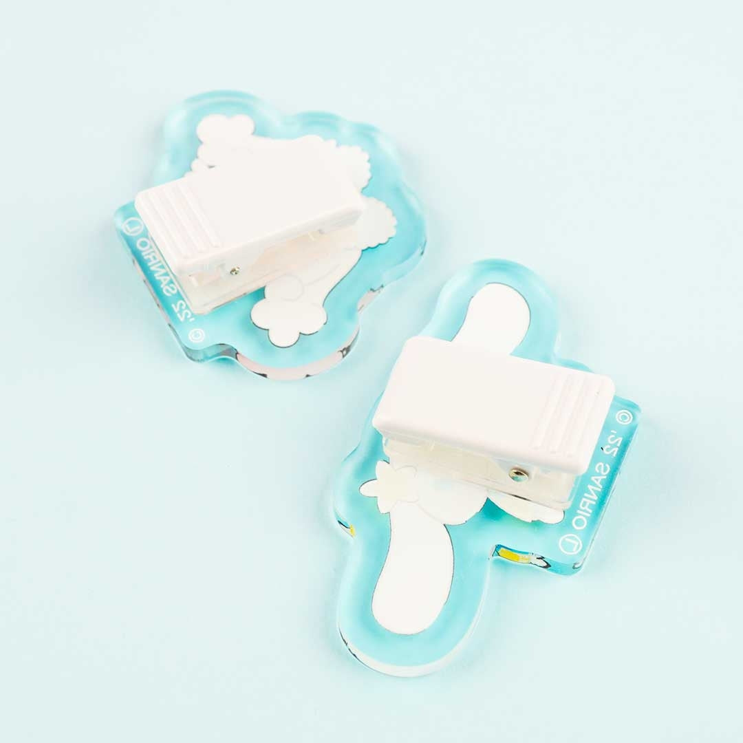 Secure your documents together using this super cute clip set! These are made of durable acrylic and feature both Cinnamoroll and one of his pals, Poron — both wearing summer vacation-ready outfits!